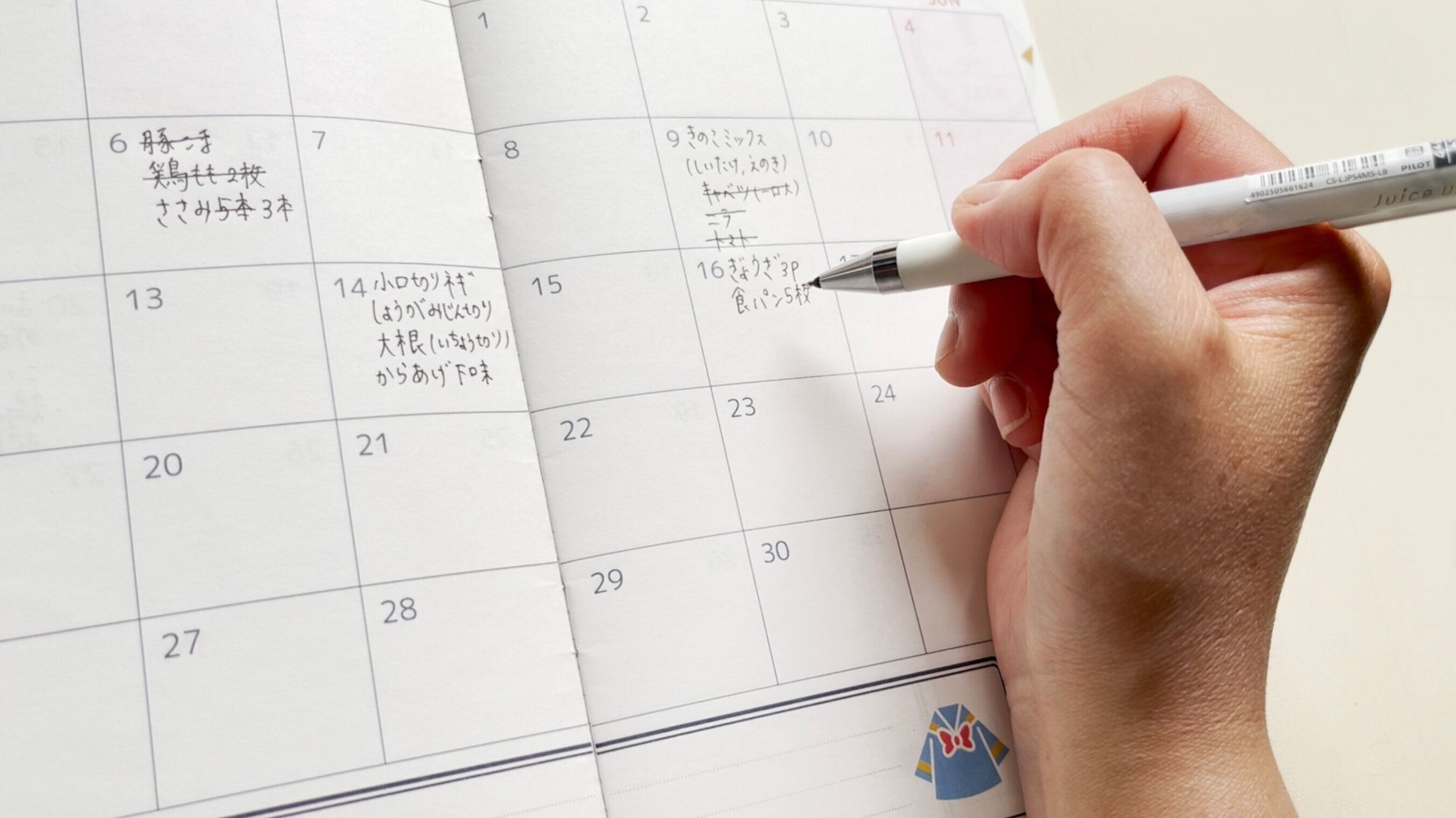 また、カレンダーを見ながら、いちばん古い日付の食材から使っていくと、使うべき食材の優先順位がわかります。古い食材から使うことで、食材の賞味期限を守りながら効率的に使い切ることができます。