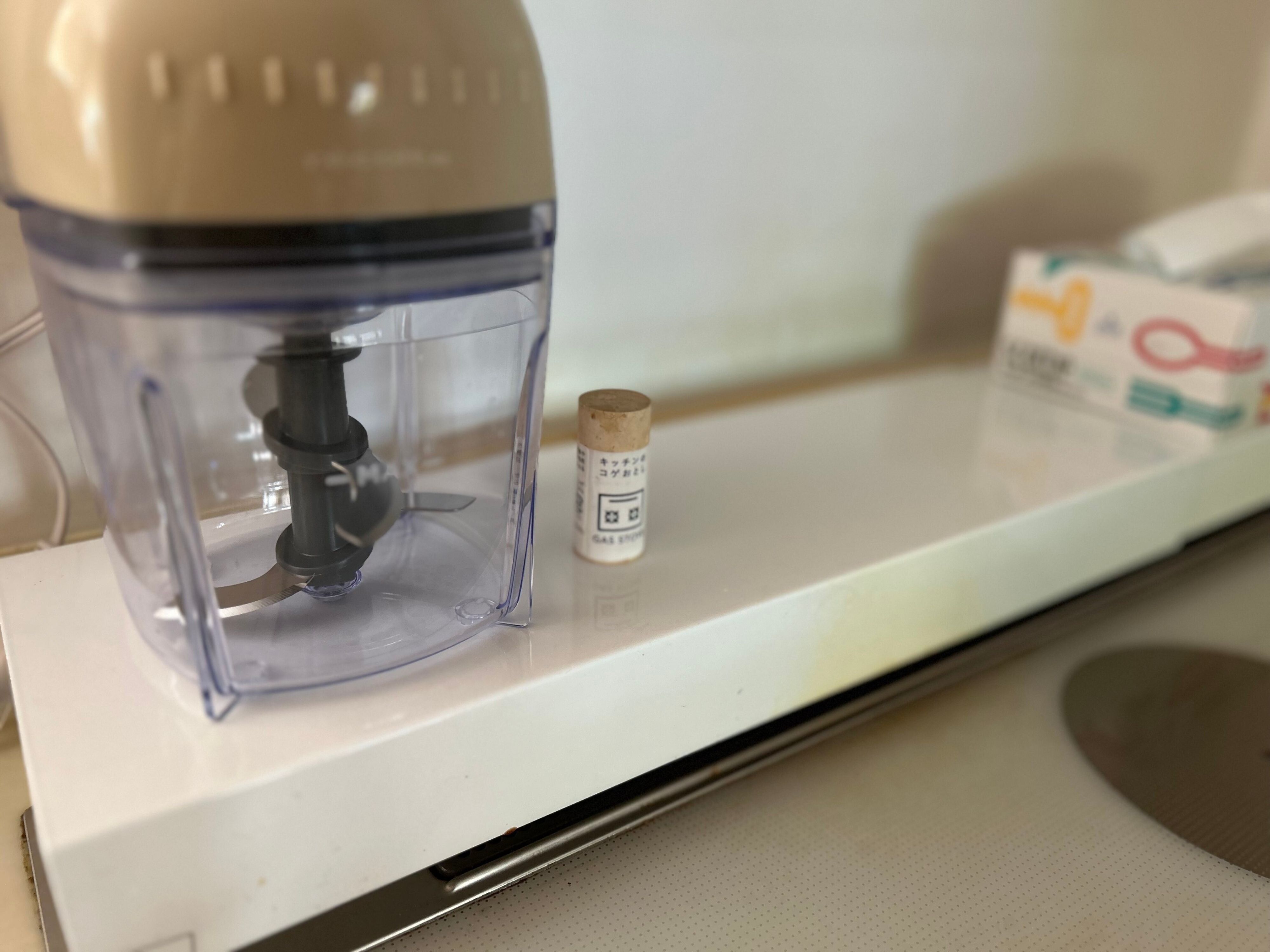 コンロの目の前に置いておいて、いつでもすぐコゲおとしができるようにしています。