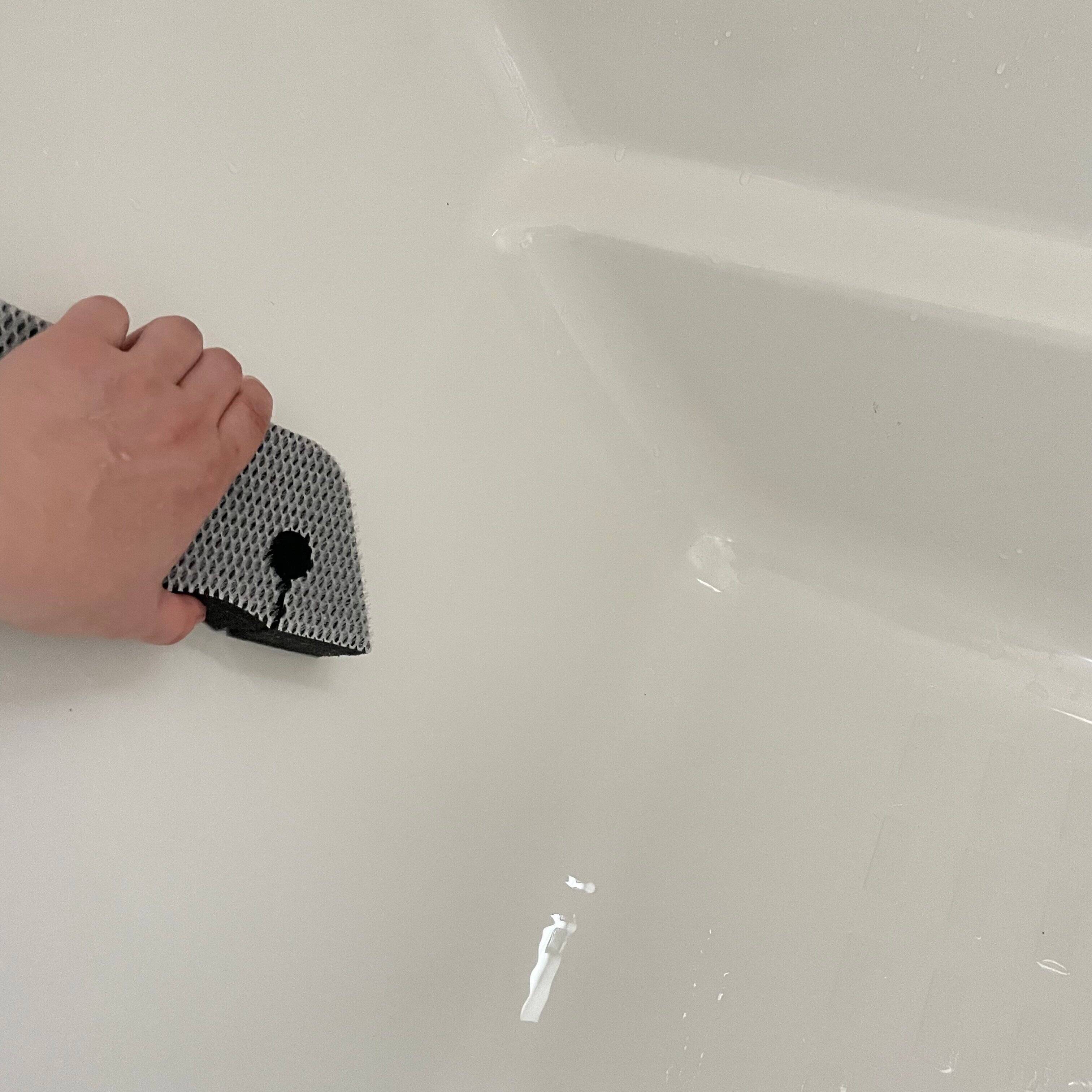 例えば、「スポンジ不要のお風呂用洗剤」は、確かに洗剤だけで汚れが落ちてラクですが、浴槽を1〜2周させるように洗剤をスプレーしないといけなく、洗剤を大量に消費してしまいます。