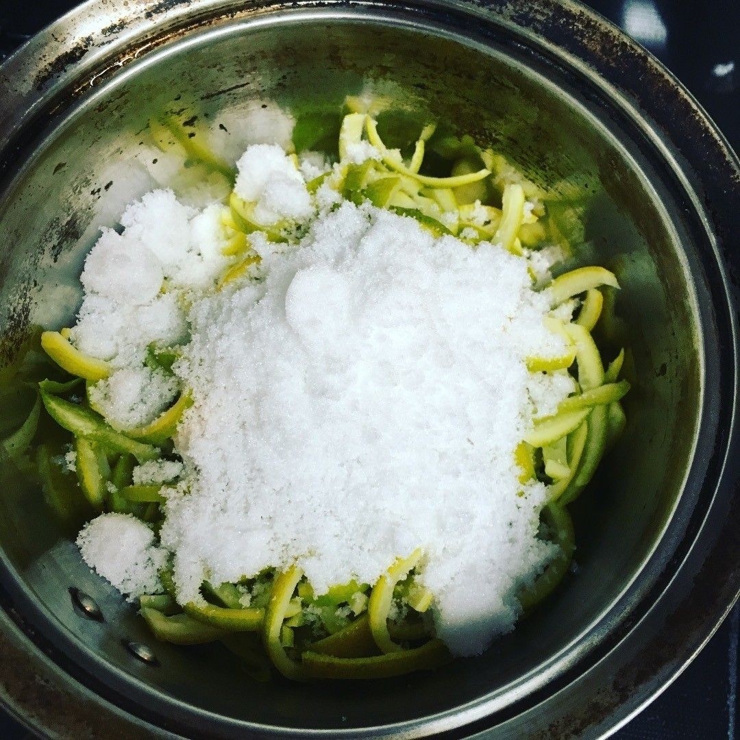 レモンの皮はたっぷりの砂糖漬けに。酸味と甘みがいいバランスで一回食べだすと止まらなくなってしまうそうです。おやつ代わりにもなりそうですね。