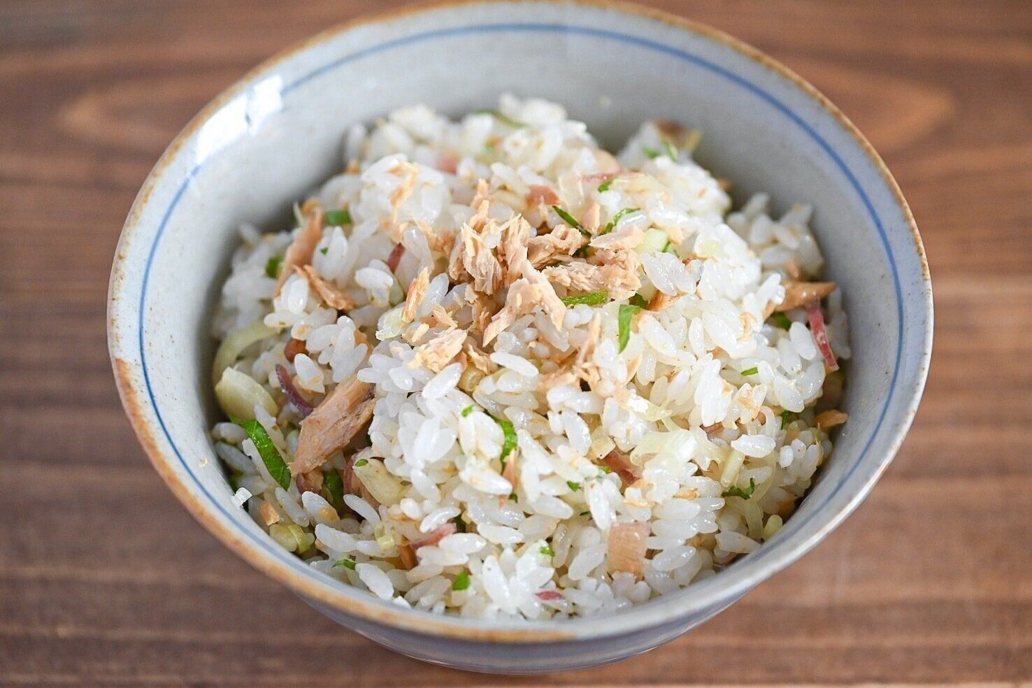 (2)炊いたごはんにすべての材料を混ぜ合わせて完成。