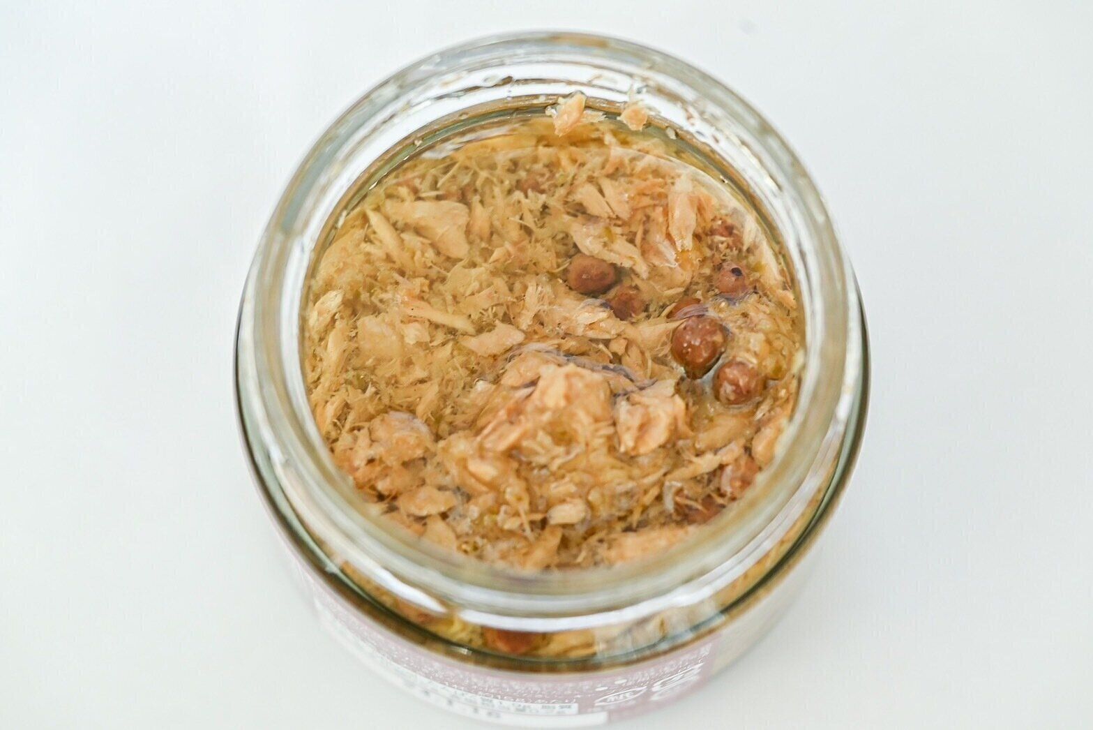 山椒のピリっとした辛さがポイントのマグロのオイル漬けです。