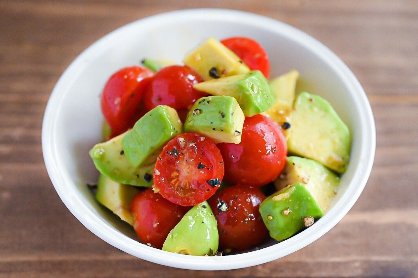 アボカドの緑、ミニトマトの赤が合わさり、
