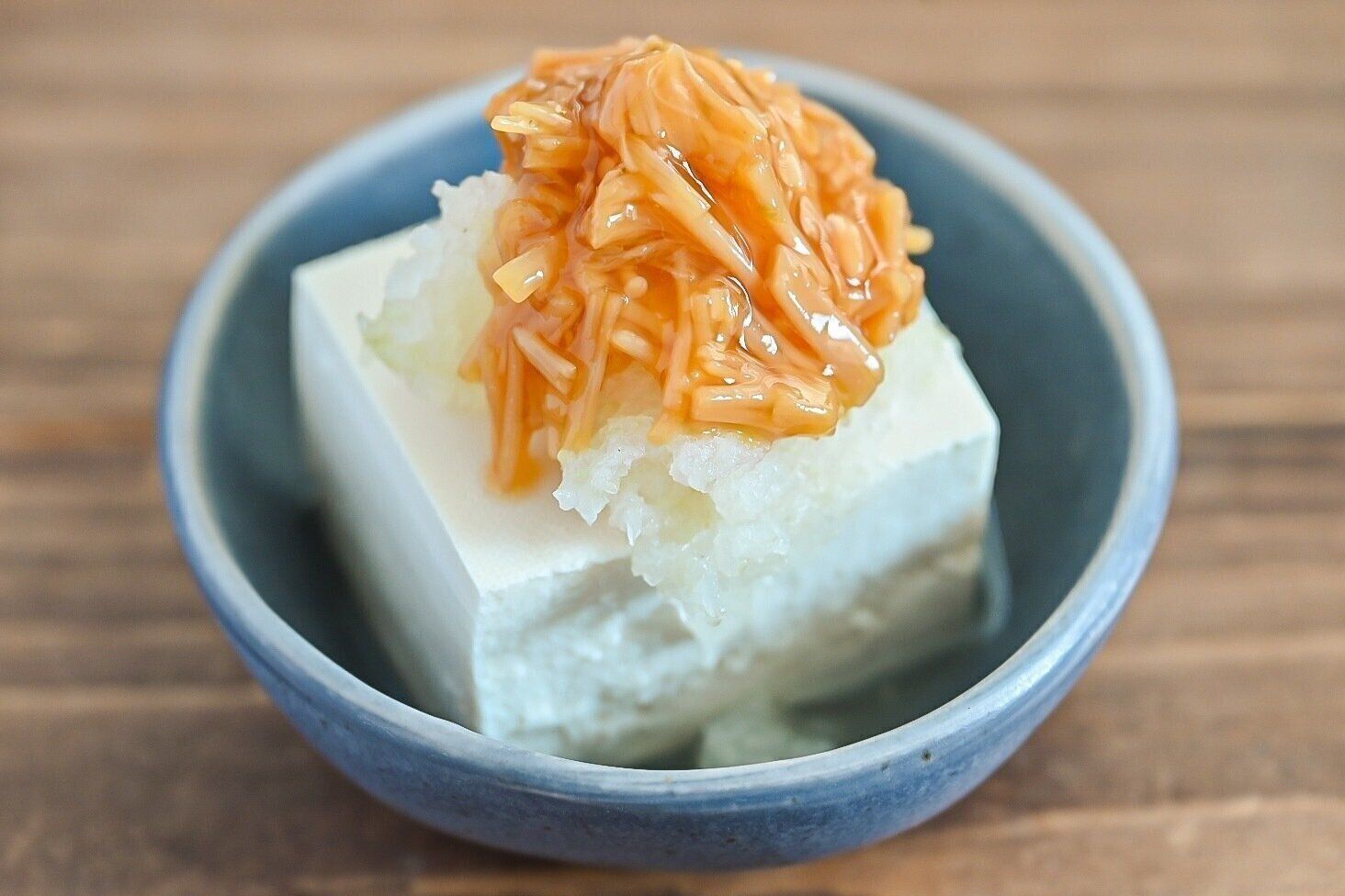 豆腐に大根おろし、柚子こしょうなめ茸をのせて完成。