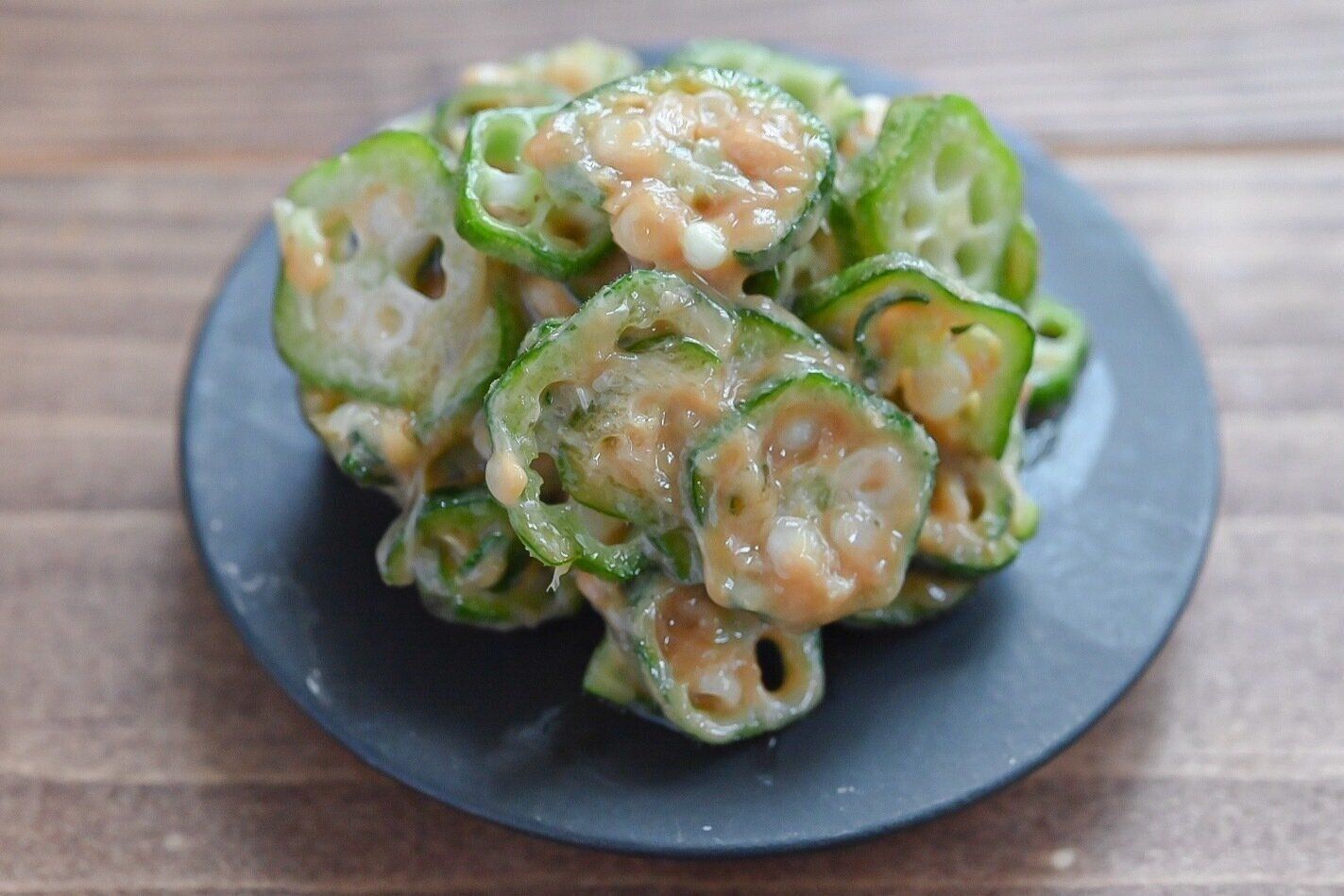 濃厚なねりごまがオクラに絡む、ついつい箸がのびるひと皿ですよ。