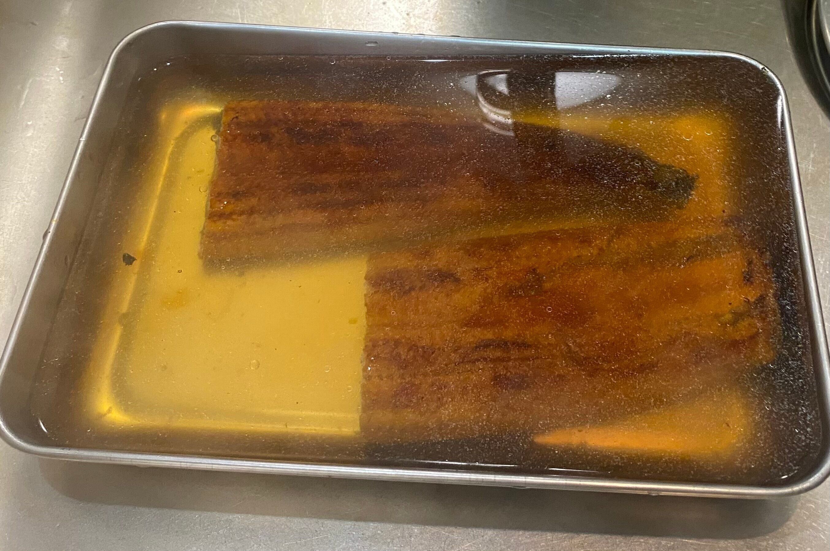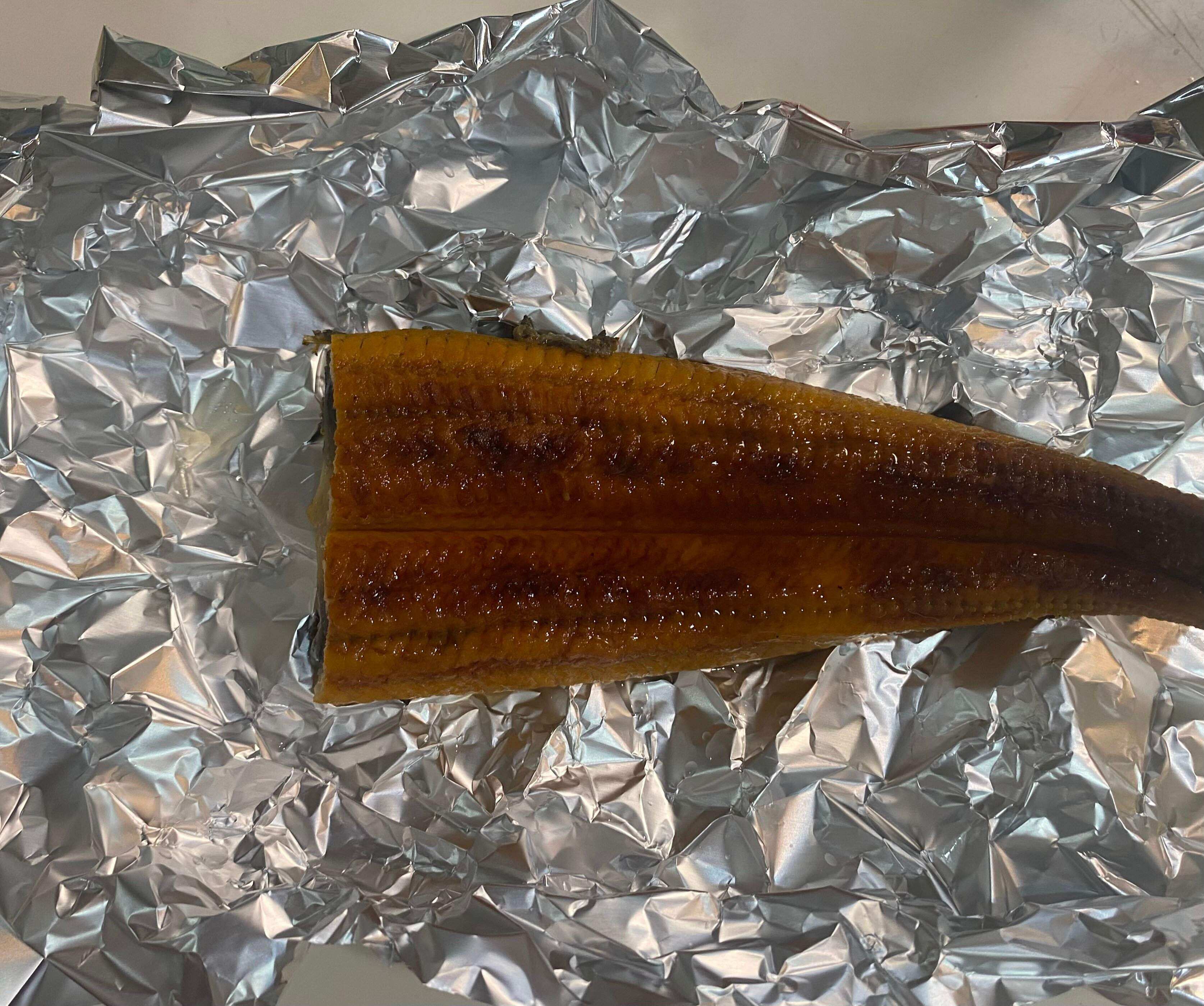水で流すだけでも良いのですが、ひと手間かけてお湯に浸けて洗い流すと、鰻のコラーゲンがふっくらしてよりおいしくなります。※やけどにご注意下さい。