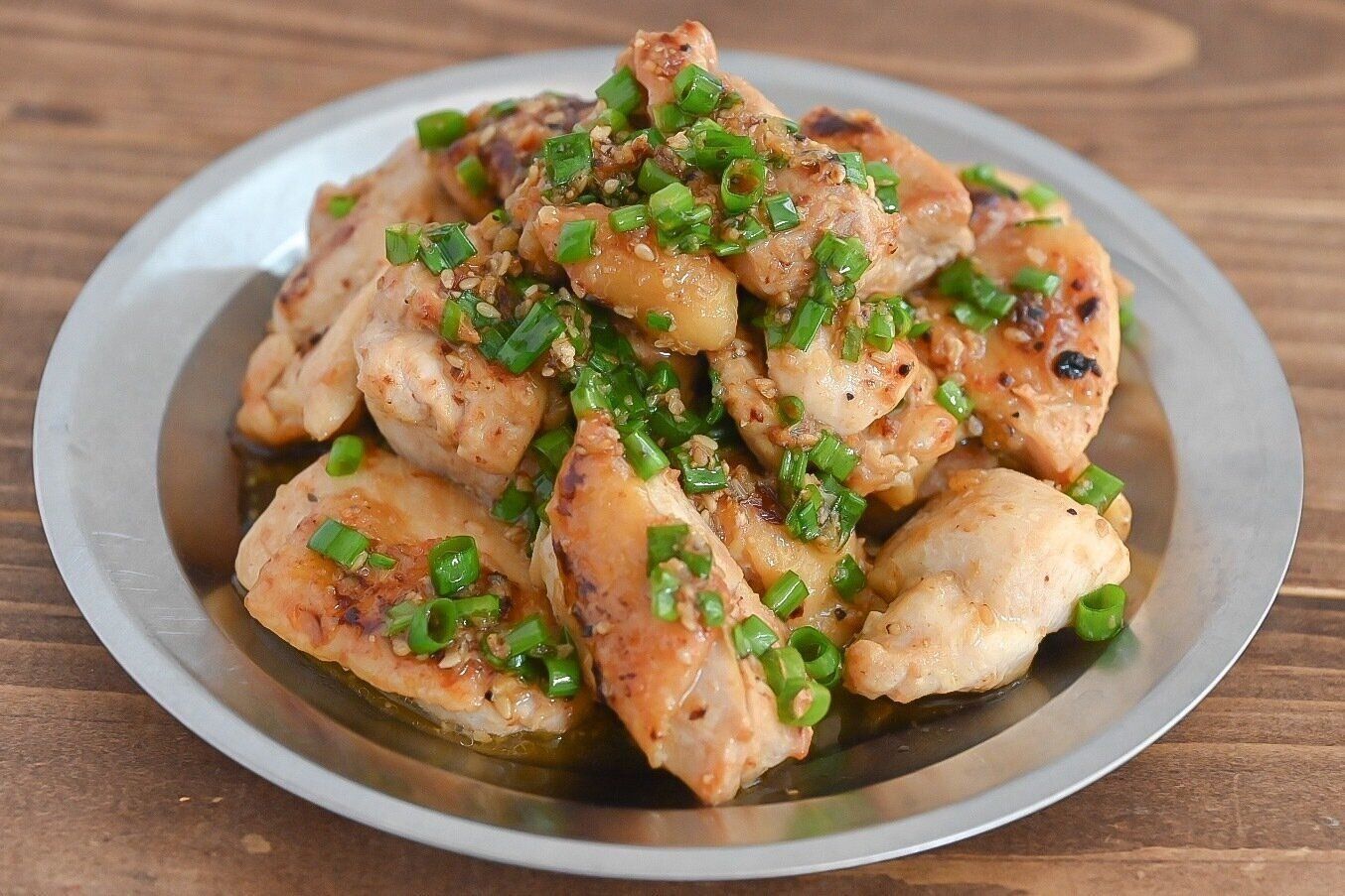 焼き色をつけた鶏肉に「韓国風レモン塩だれ」とたっぷりの小ねぎを合わせれば、