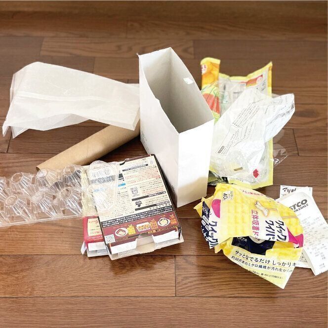 レトルトの箱やトイレットペーパーの芯はつぶしてから捨てています。他にも紙製の小さなドリンクパックなどもペシャンコにしています。特にドリンク系はつぶすついでに中の水分も出せるので一石二鳥です。
