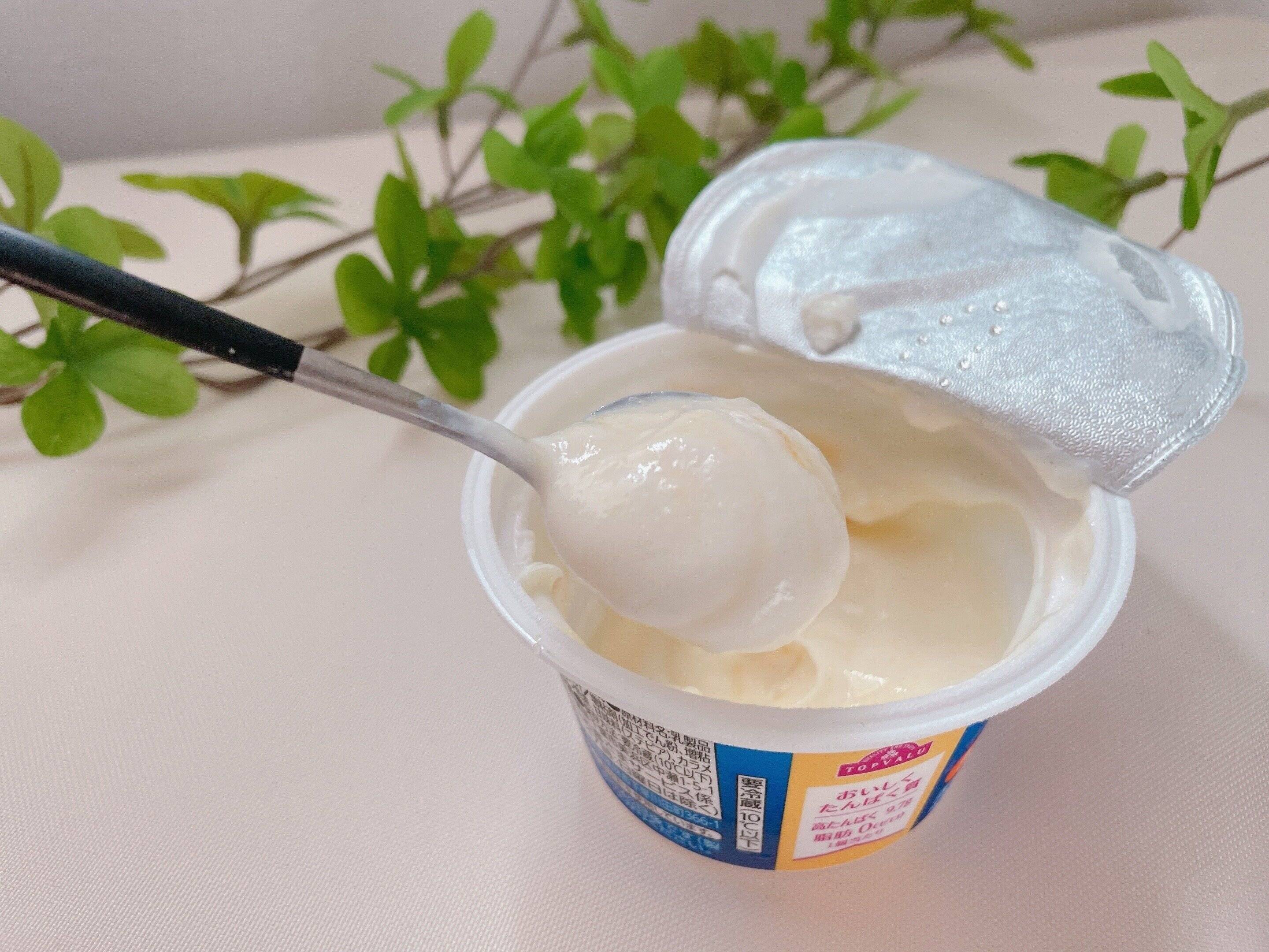 高タンパクで濃厚、さわやかなみかんソースが底に入っていて、見た目もさわやかです。