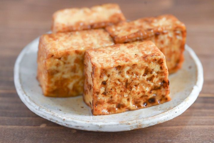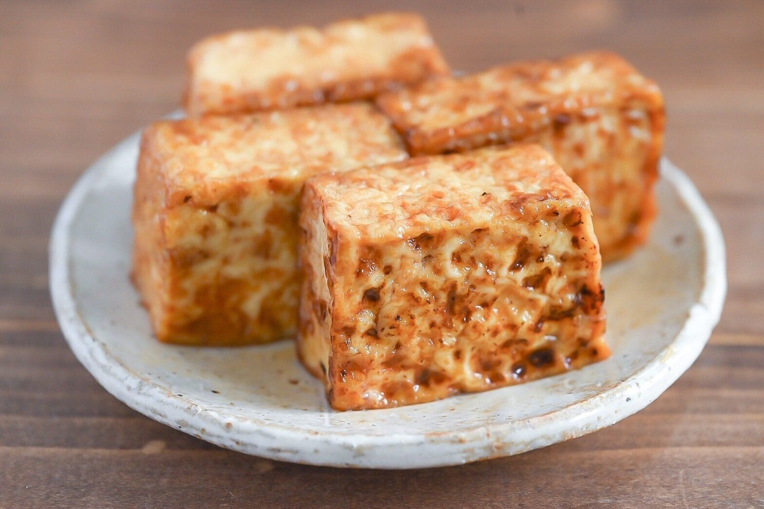 (3)木綿豆腐の全面に焼き色がついたら、すき焼きのたれを加えてからめるように加熱して完成。