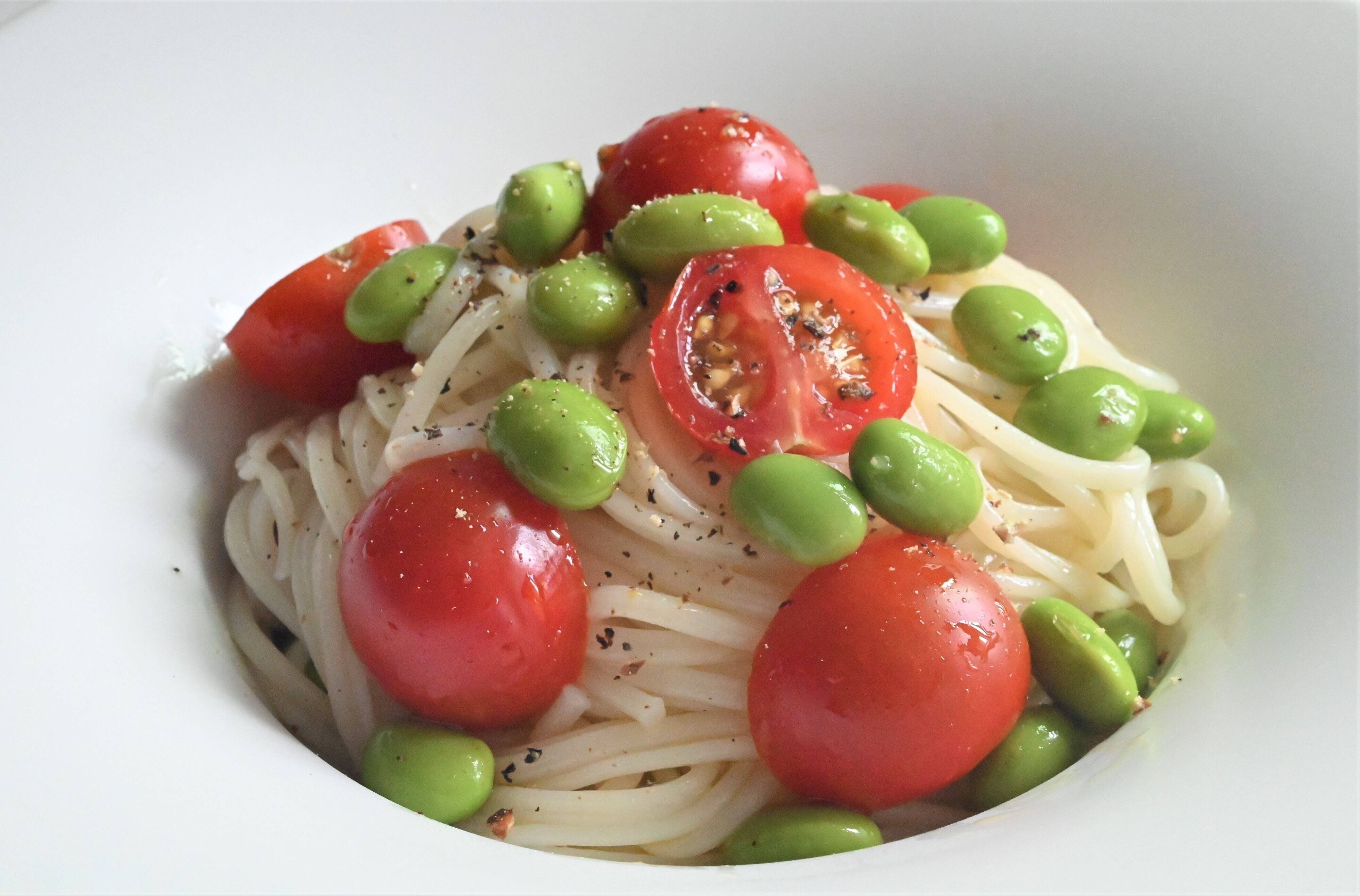 そうめんの洋風アレンジ!枝豆とミニトマトそうめん