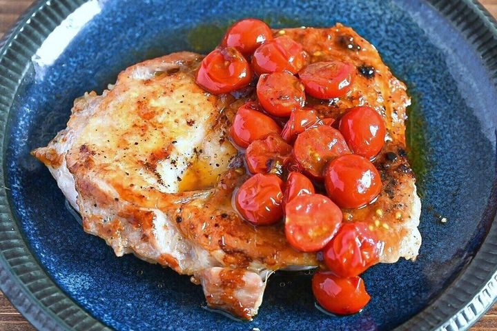 「ほりにし」でスパイシーに焼き上げたチキンに、加熱して甘みが増したトマトが相性バッチリの主菜レシピです。材料は4つだけですが、お店で出てくるようなひと皿になりますよ。