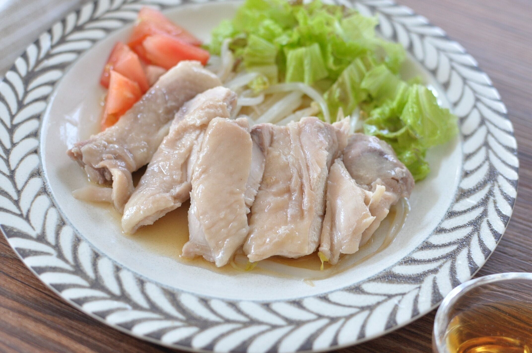 ほんのり塩味がしみ込んだ蒸し鶏は、旨味のあるさっぱり味で、食欲のない日でも食べやすいですよ。今回は混ぜるだけの簡単たれも作っていきます。