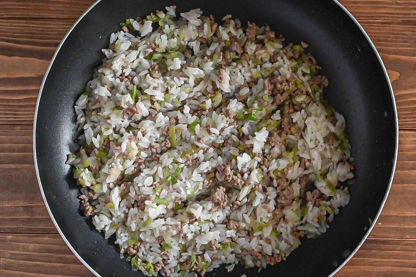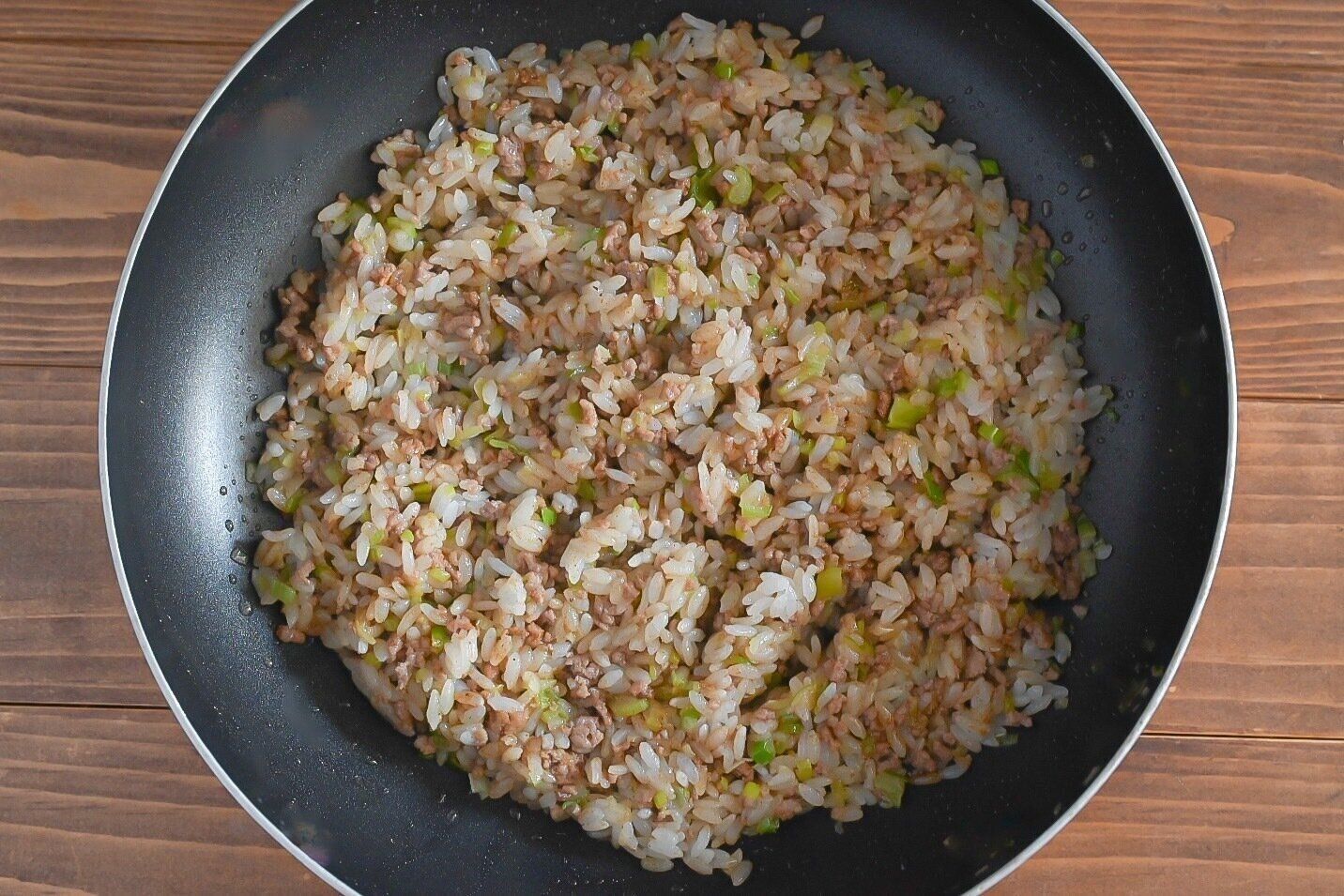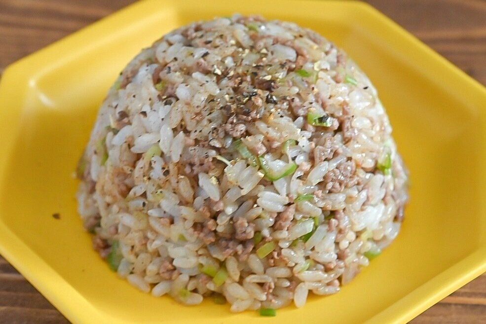 用意する食材はご飯と合いびき肉だけになっていますが、