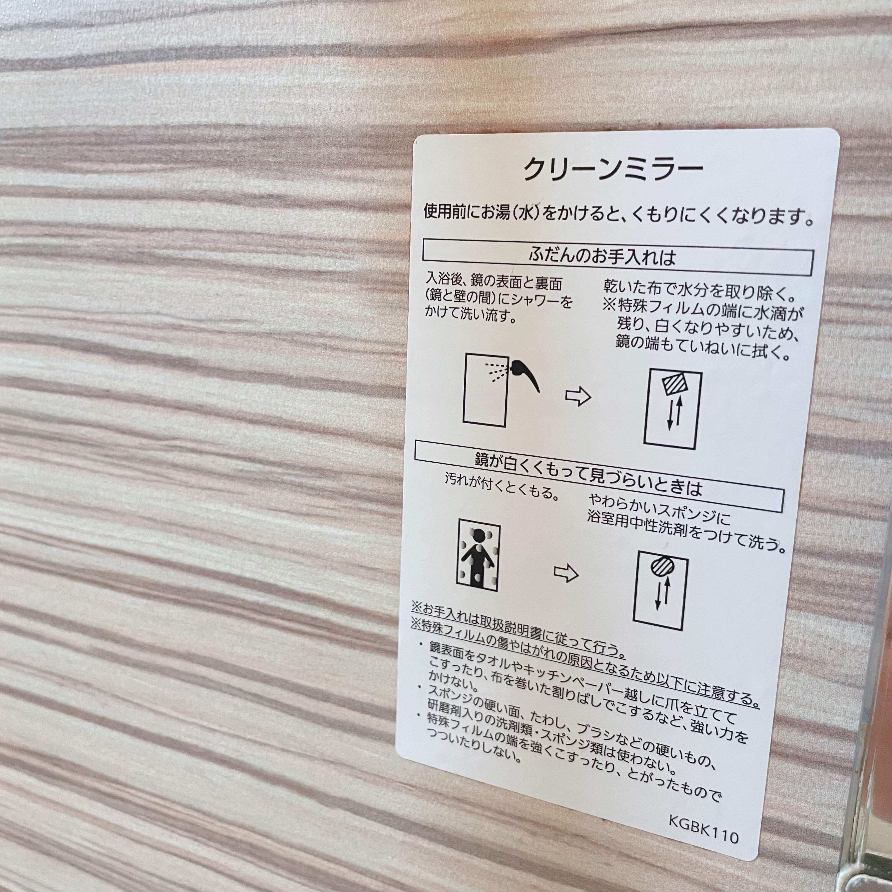 わが家のお風呂の鏡には、わざわざ目立つ位置に鏡のお手入れ方法について記載がありました。