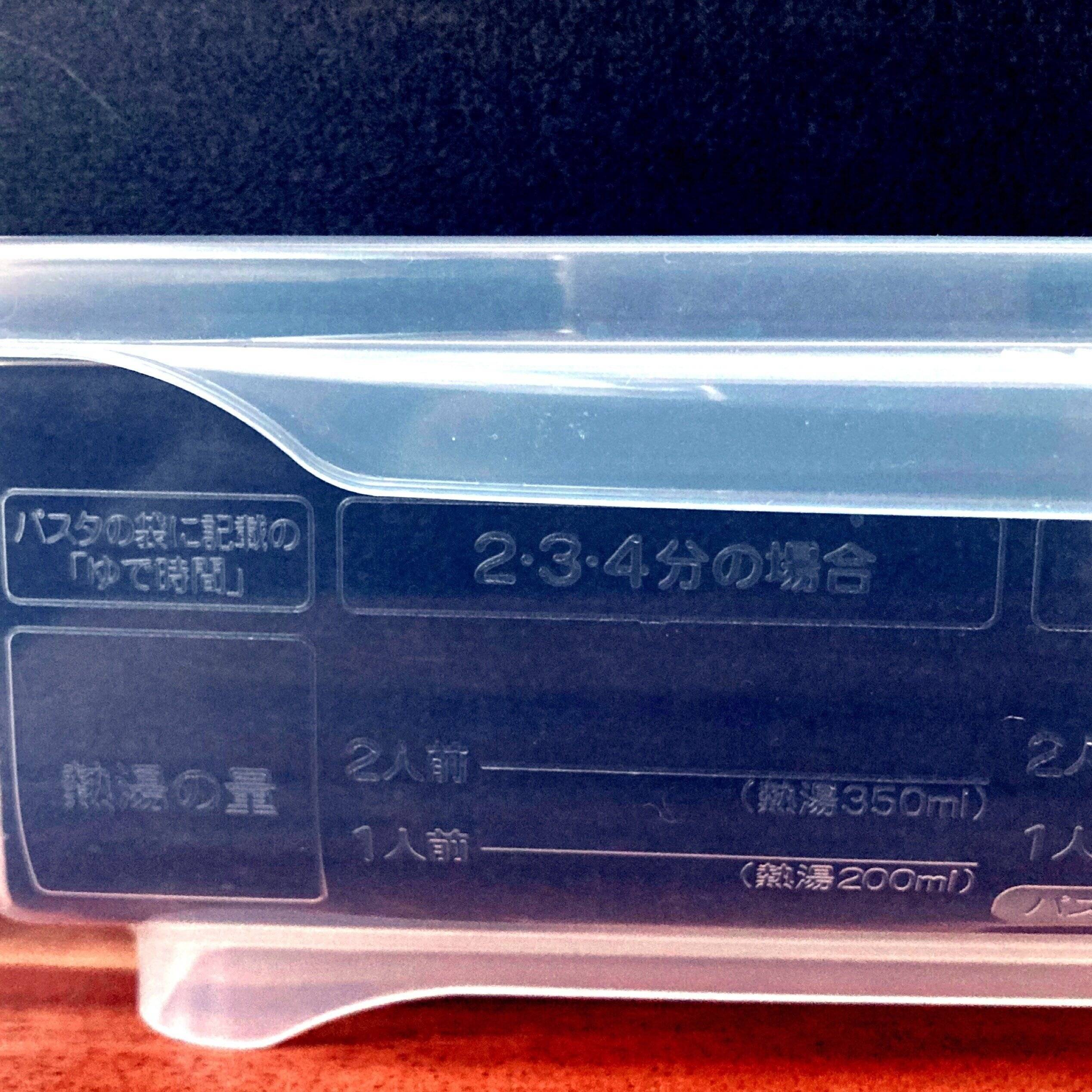 容器の側面には使うパスタのゆで時間にあわせた水量が記されているので、そそぐ量を間違える心配がありません。これを使い始めてからほとんど失敗がなくなりました。