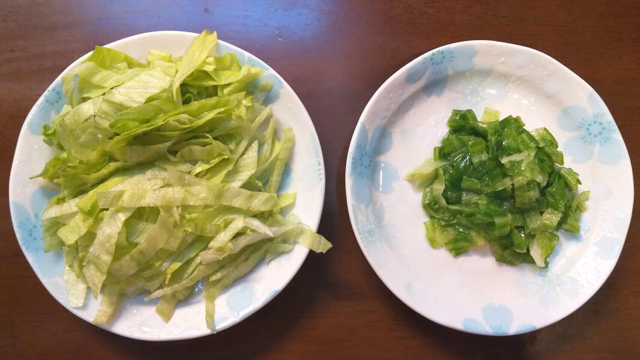 1. レタスなどの野菜、ベーコンを千切り、もしくは食べやすい大きさに切ります。
