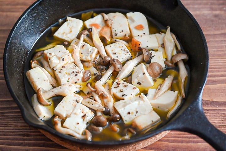 オイルまでおいしく!しめじと豆腐のアヒージョ