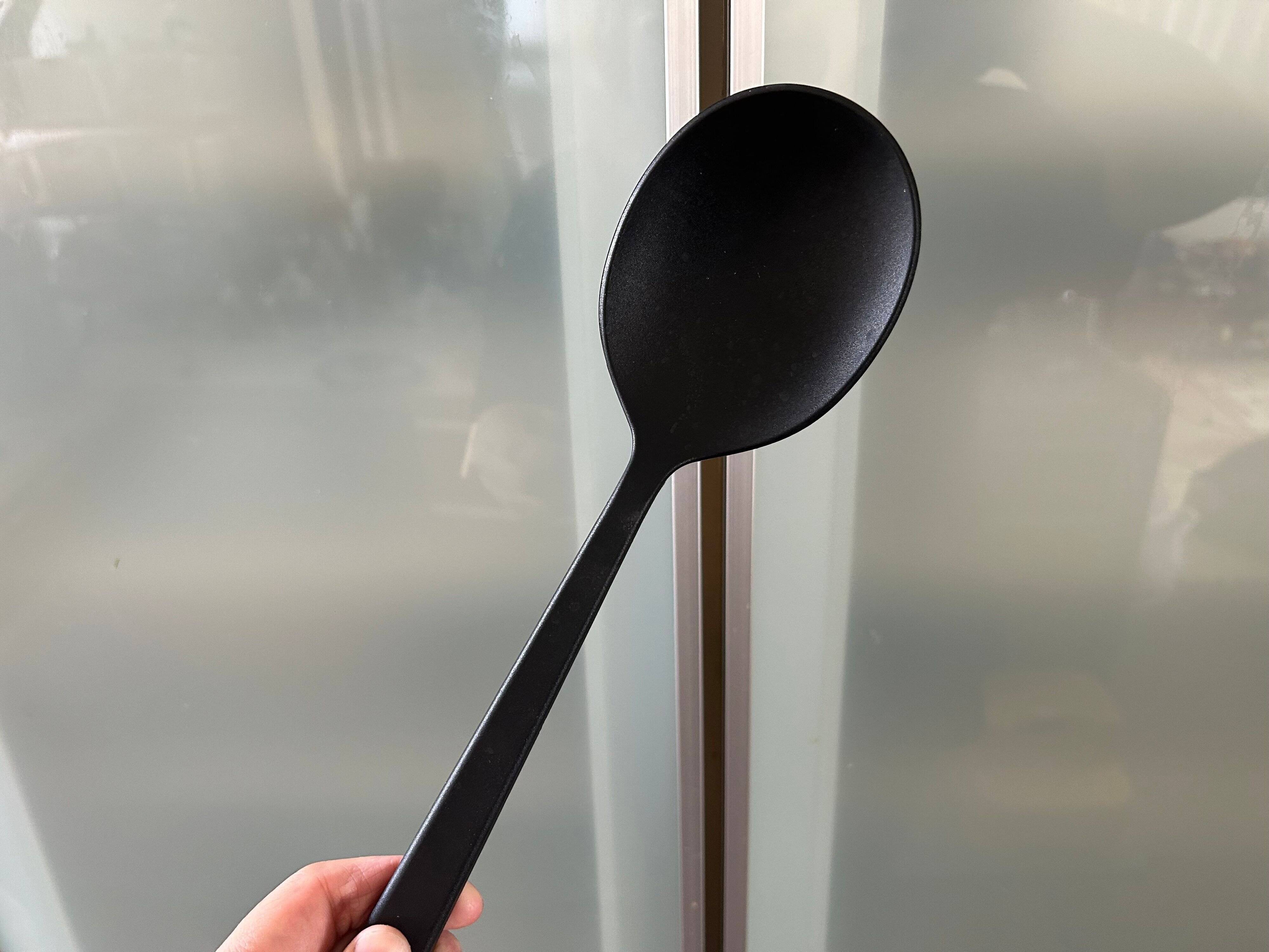 何が素晴らしいって、大抵のフライパン調理がこの「シリコーン調理スプーン」で完結できること。おたまやヘラ、菜箸と使い分けていた今までは何だったんだと思うほど快適です。