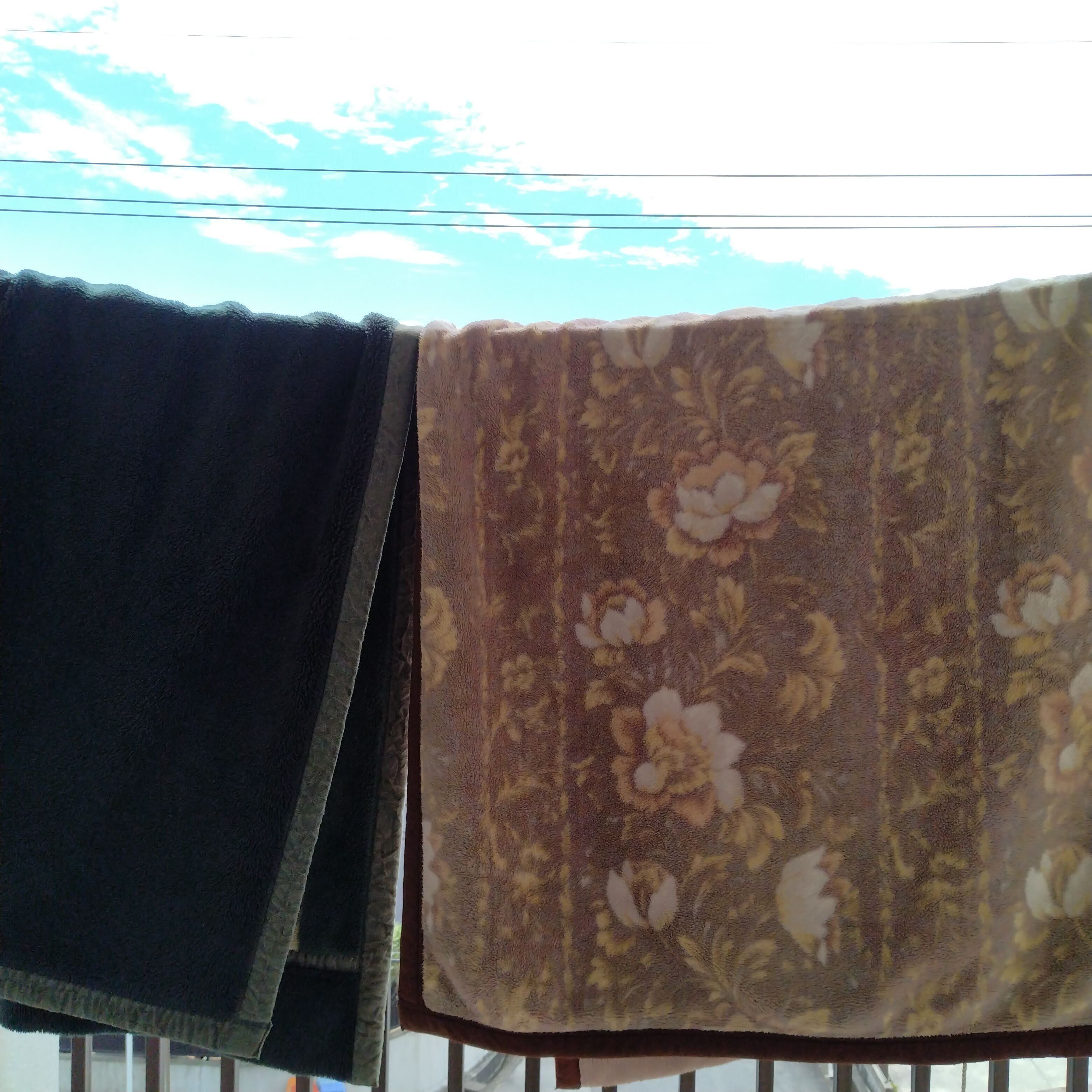 文字だけ見ると「乾燥代はたかが1,000円」ですが、朝、洗濯機の毛布洗い機能を使って、いつもより時間をかけ毛布洗いを4枚したうえ、コインランドリーの乾燥代を少しでも節約するため、日中は天日干し。