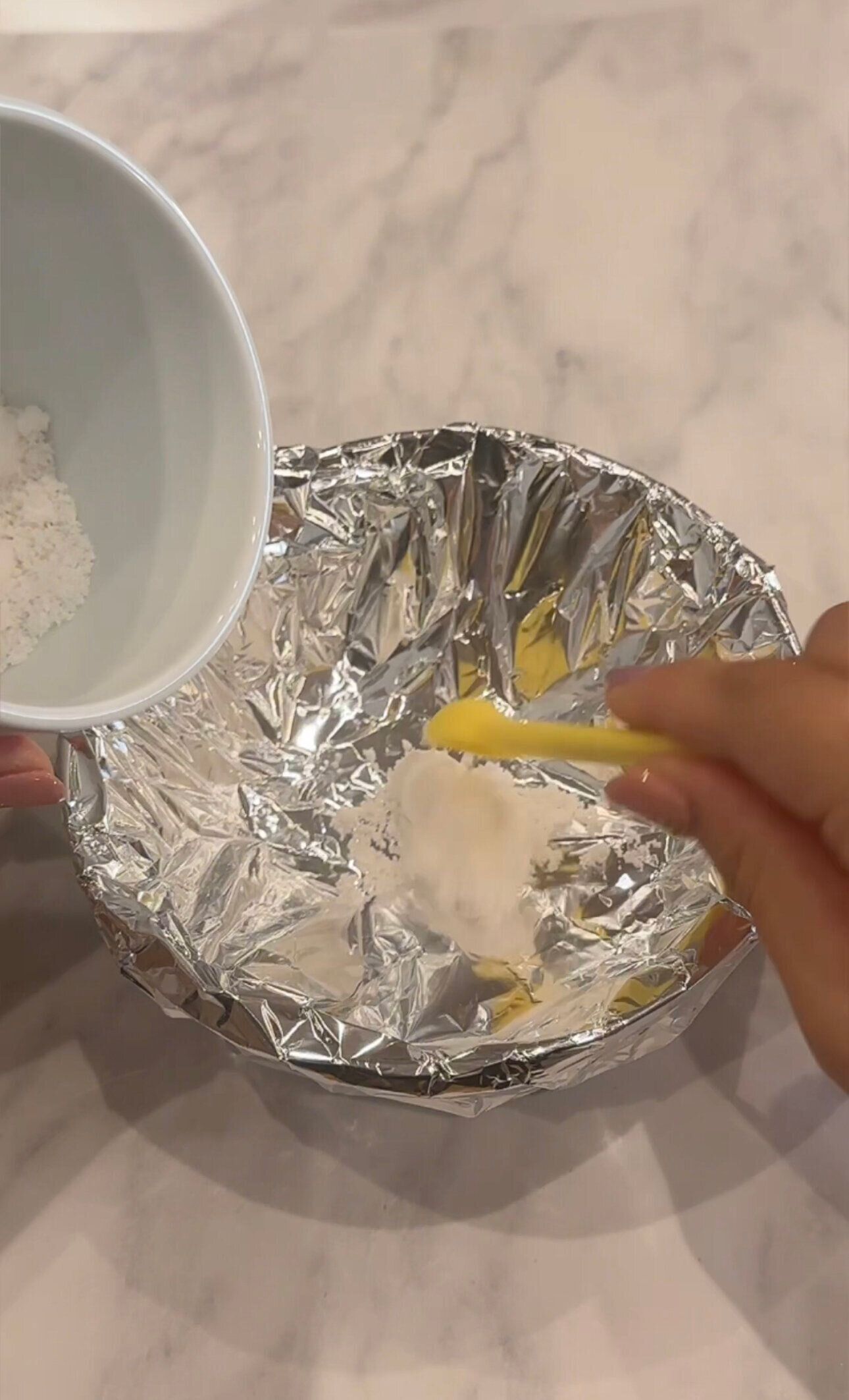 1:耐熱ボールにアルミホイルを巻いていきます。