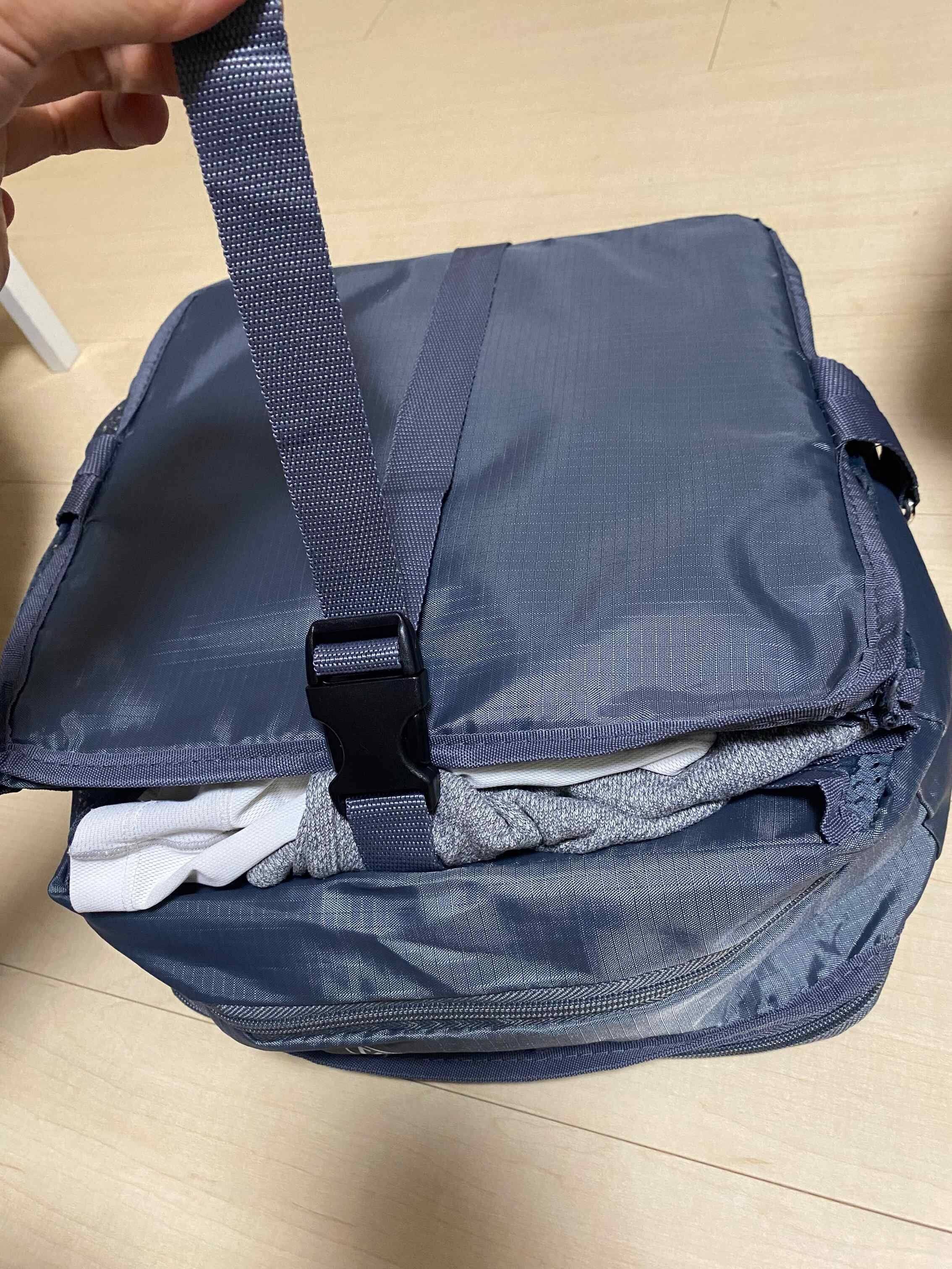 一番下のポーチ部分に服を積めてファスナーを閉めたり、