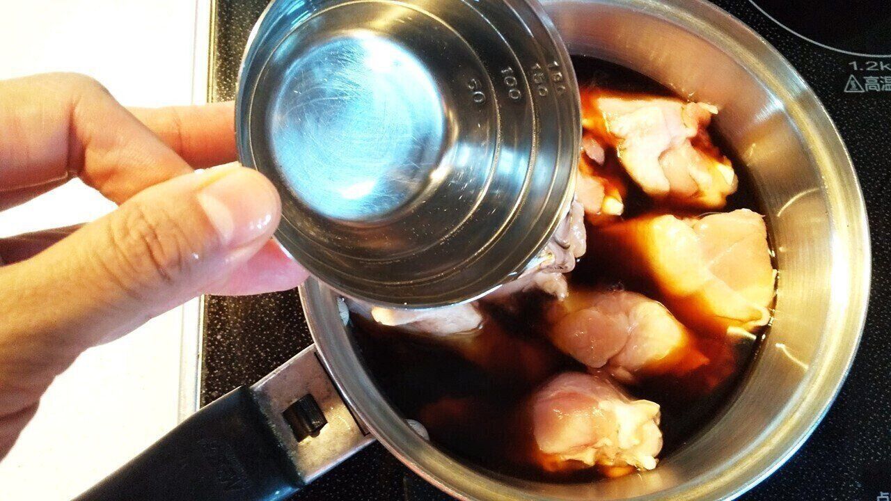 (このとき、できるだけ鶏肉に煮汁が浸るよう、ぴったり収まるくらいの鍋底の大きさのものを選ぶと◎)