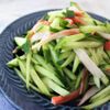 (2)鶏もも肉はひと口大に、にんじんは千切りにする。