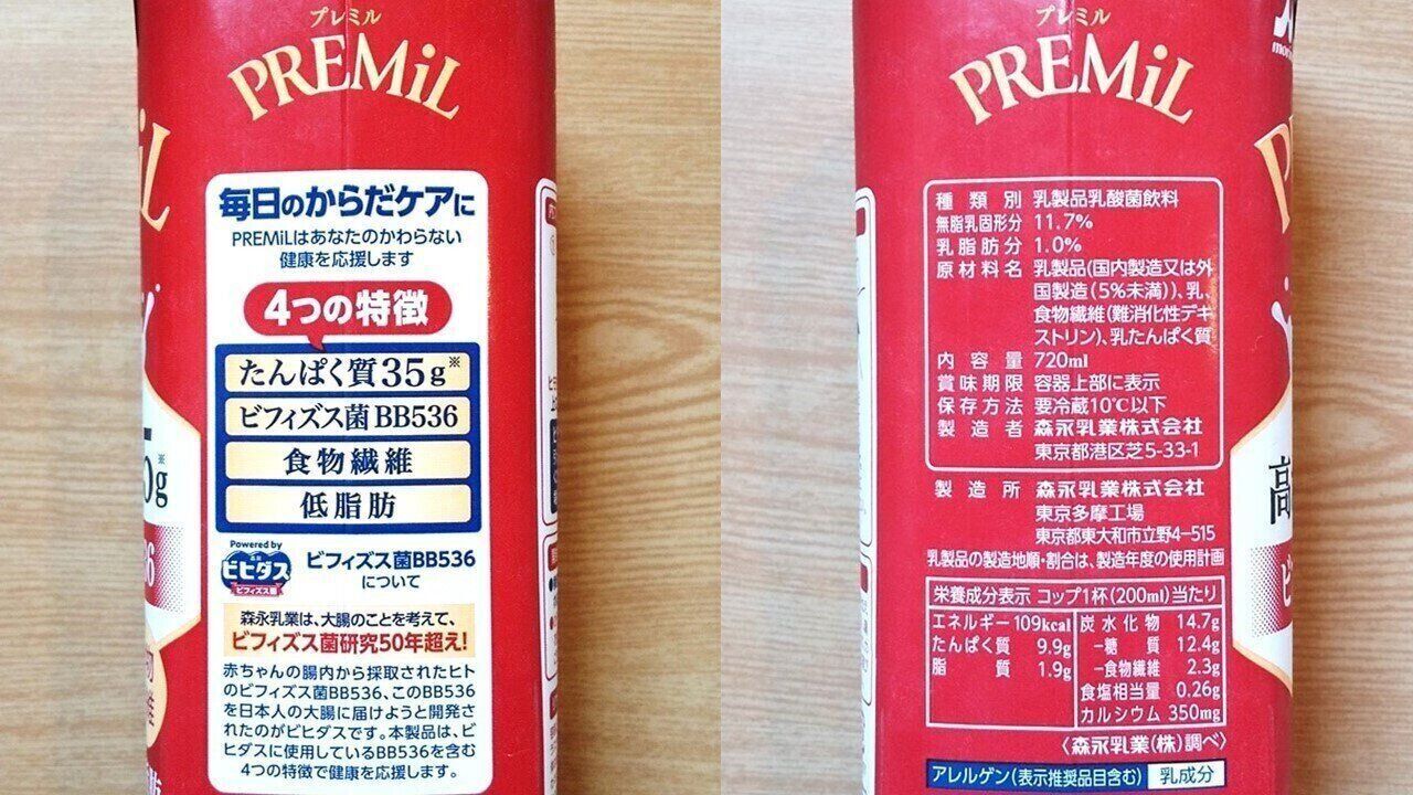 パッケージ中央には「高たんぱく35g」 と「ビフィズス菌BB536」いう表記があり、一般的な牛乳にはない特徴が強く打ち出されていました。