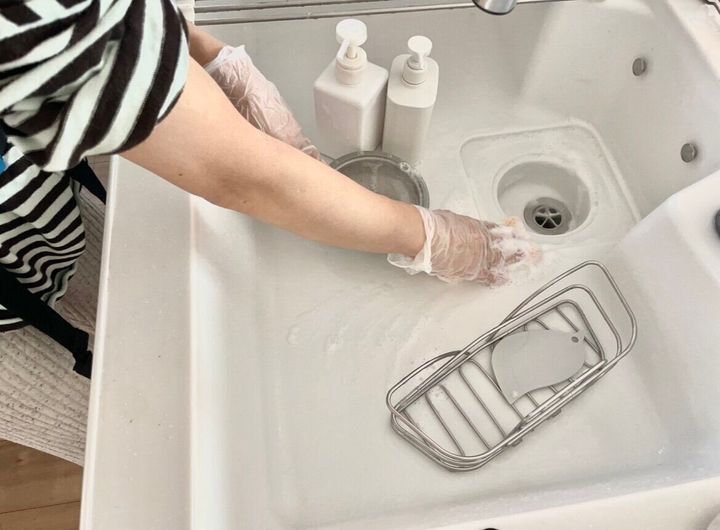 4日目に食器→シンクと使用したスポンジはそのままビニール手袋をつけて