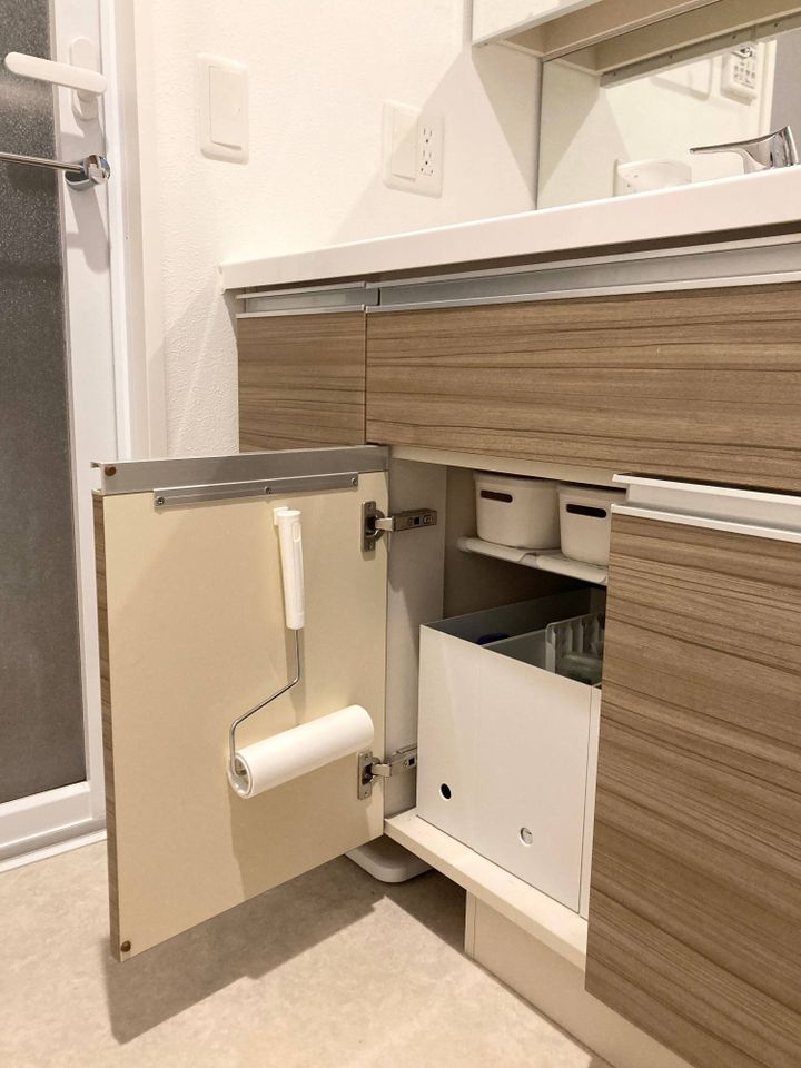 粘着クリーナーは取り出しやすい扉裏に収納。