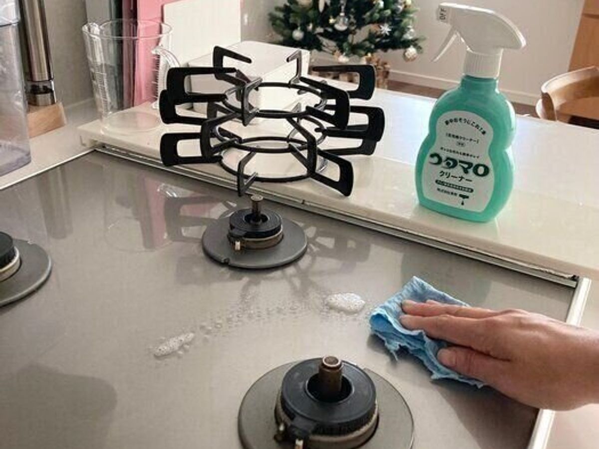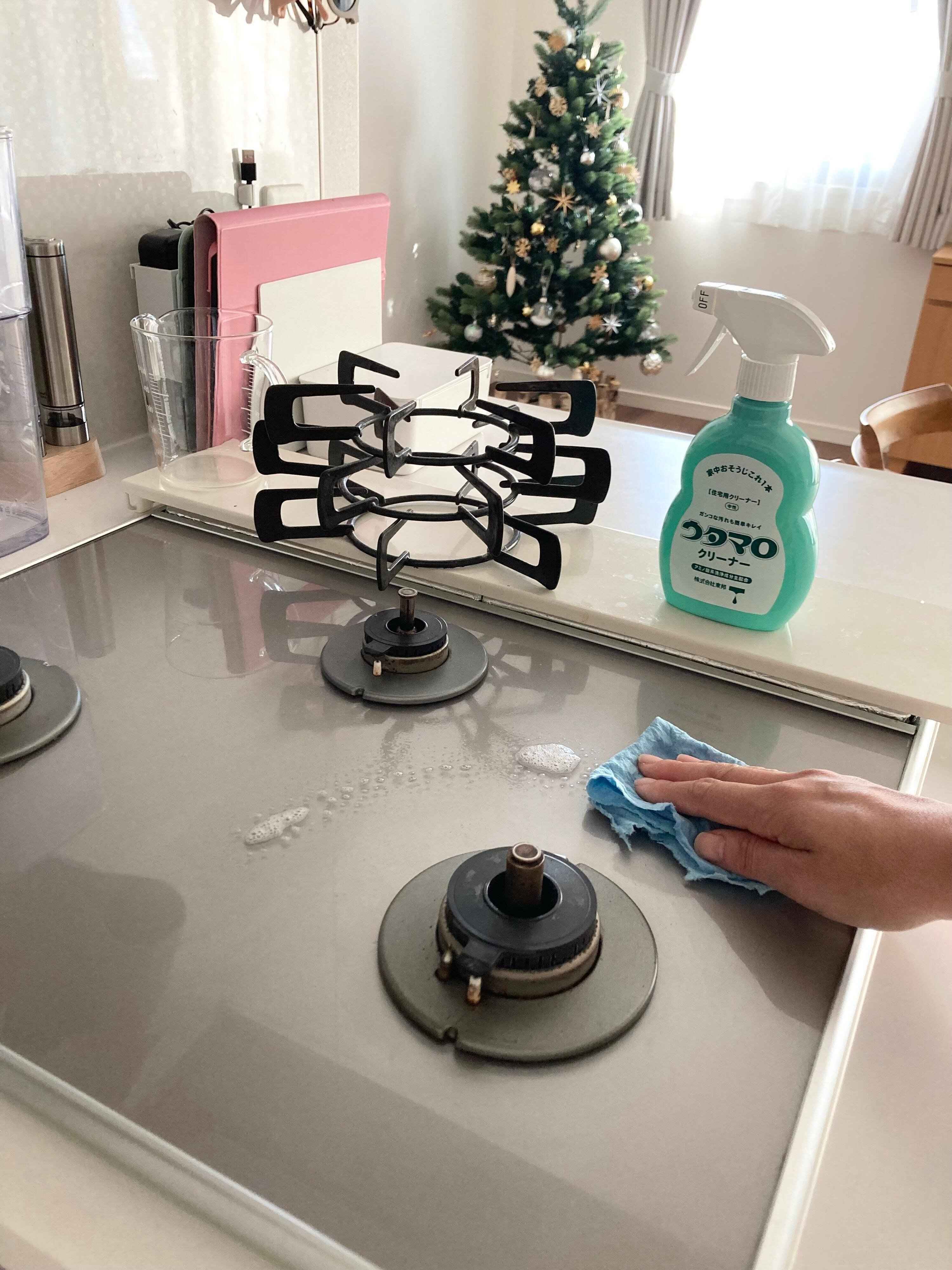 夕食後はコンロ周り、ワークトップ、シンクをウタマロクリーナーでサッと拭いて終了。ここも軽く拭き上げなので2分程度で終わります。