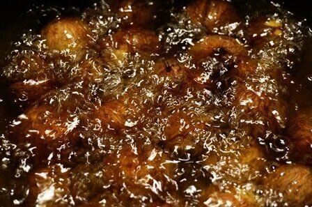 油の中でじっくり火をとおします