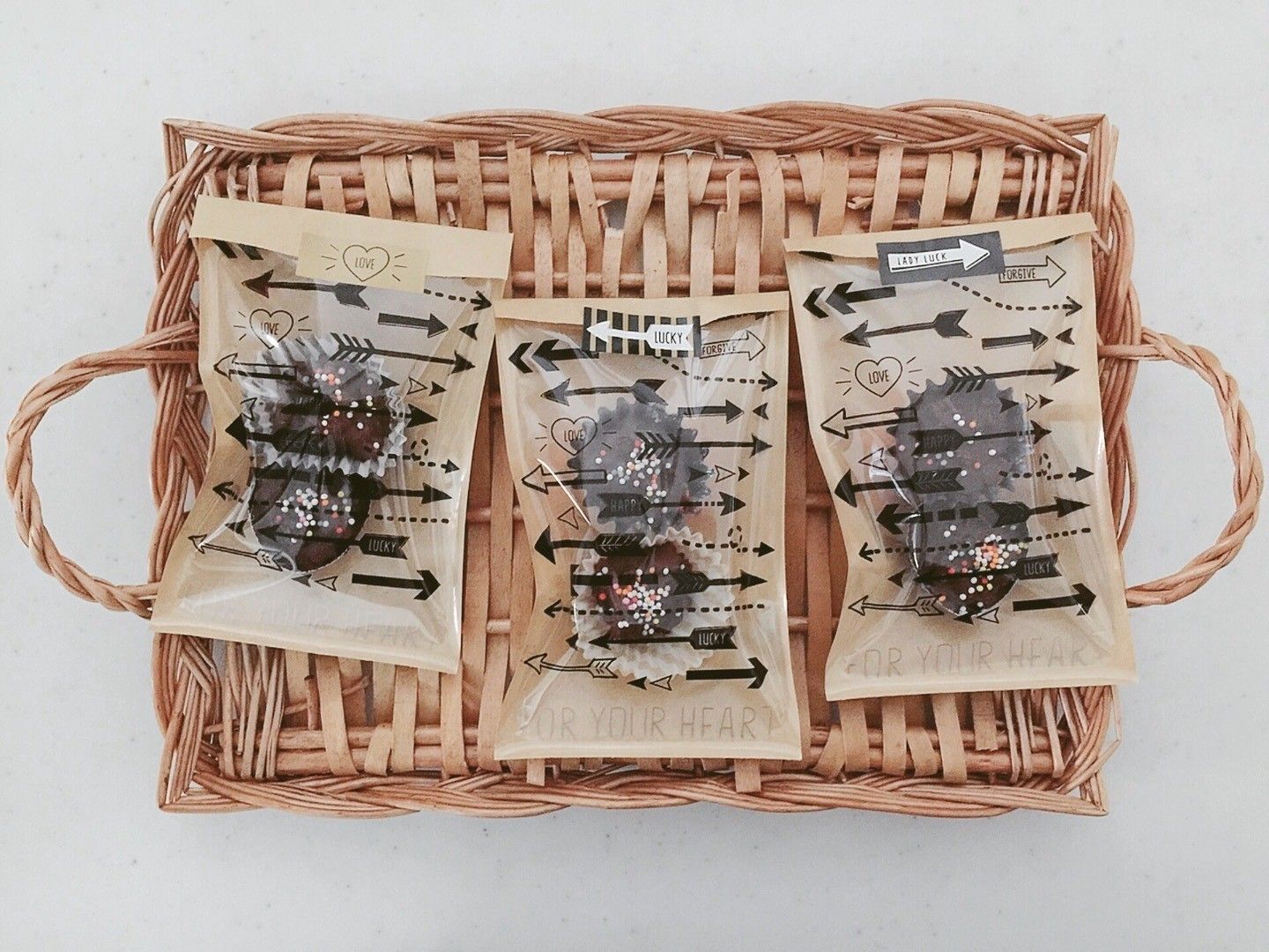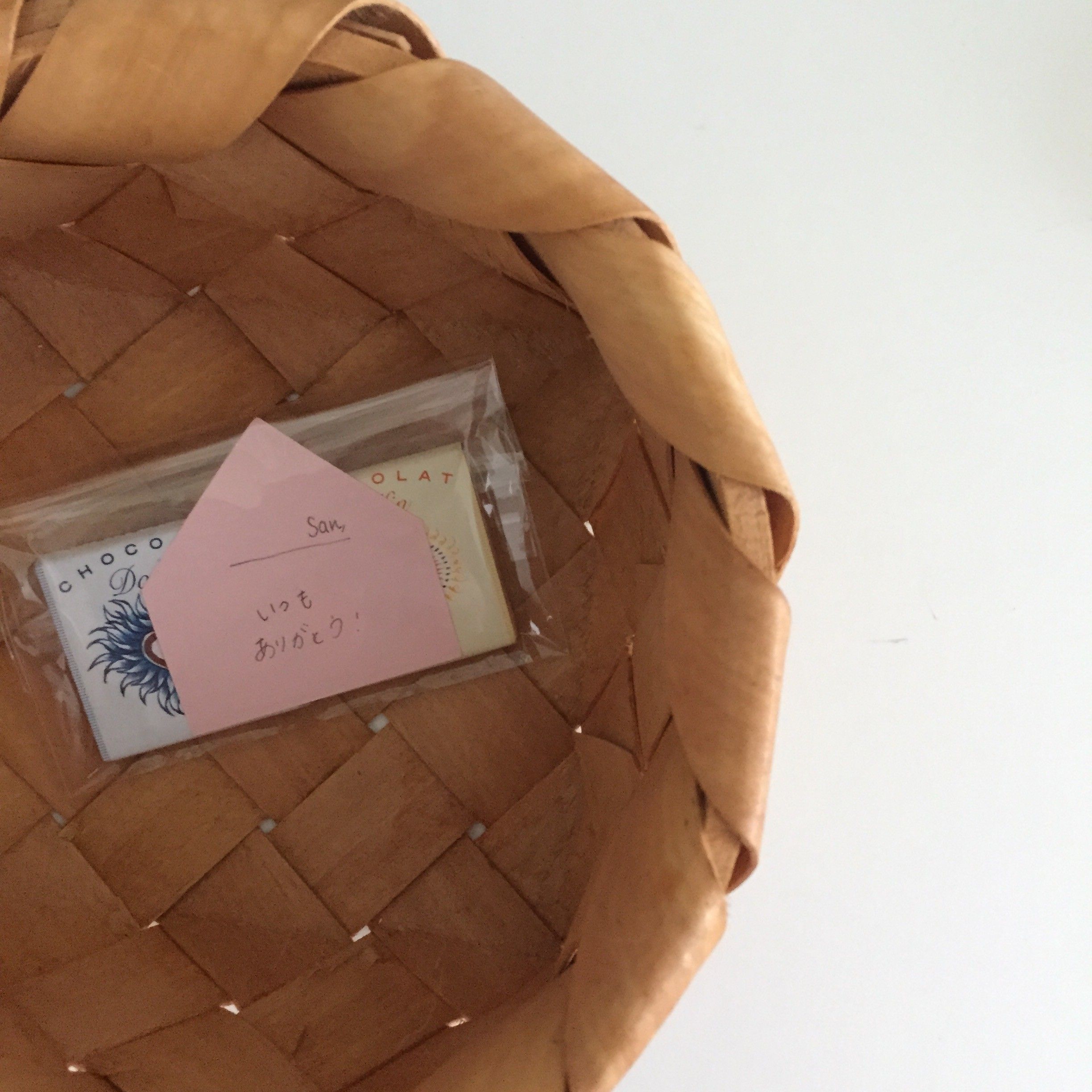 サンキュ!ブロガーのkikoさんは、職場で渡すチョコのラッピングにひと工夫。必要なものは100均のフィルムBAG、マスキングテープ、メッセージカードだけ。カードを家型に折り、メッセージを添えるだけで感謝の気持ちが伝わるギフトに。BAGの口はマステでとめ、キュートに仕上げました。これを100均のナチュラルなカゴに盛って配ると見ばえもばっちり!