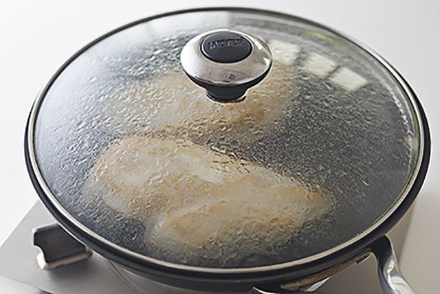 パサつきがちな鶏胸肉は「しっとりソテー」にすると、驚くほどふっくらやわらかく仕上がります。室温にもどした鶏胸肉2枚を両面中火で2分ずつ焼いたあと、火を止めればOK。ふたをして15分放置!