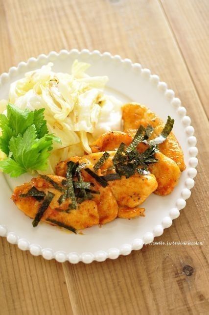 しっとりソテーの焼き上がりにコチュジャンと砂糖、しょうゆの甘辛だれをからめて韓国風に。さめてもおいしいので、おべんとうおかずにも最適です!