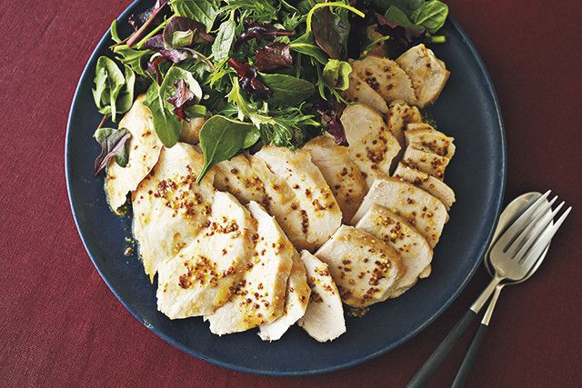 チキンの蒸し汁やオリーブ油、粒マスタードなどを合わせた「粒マスソース」をかけても美味。白ワインなどにもよく合う、大人の味の「おつまみおかず」ができます。