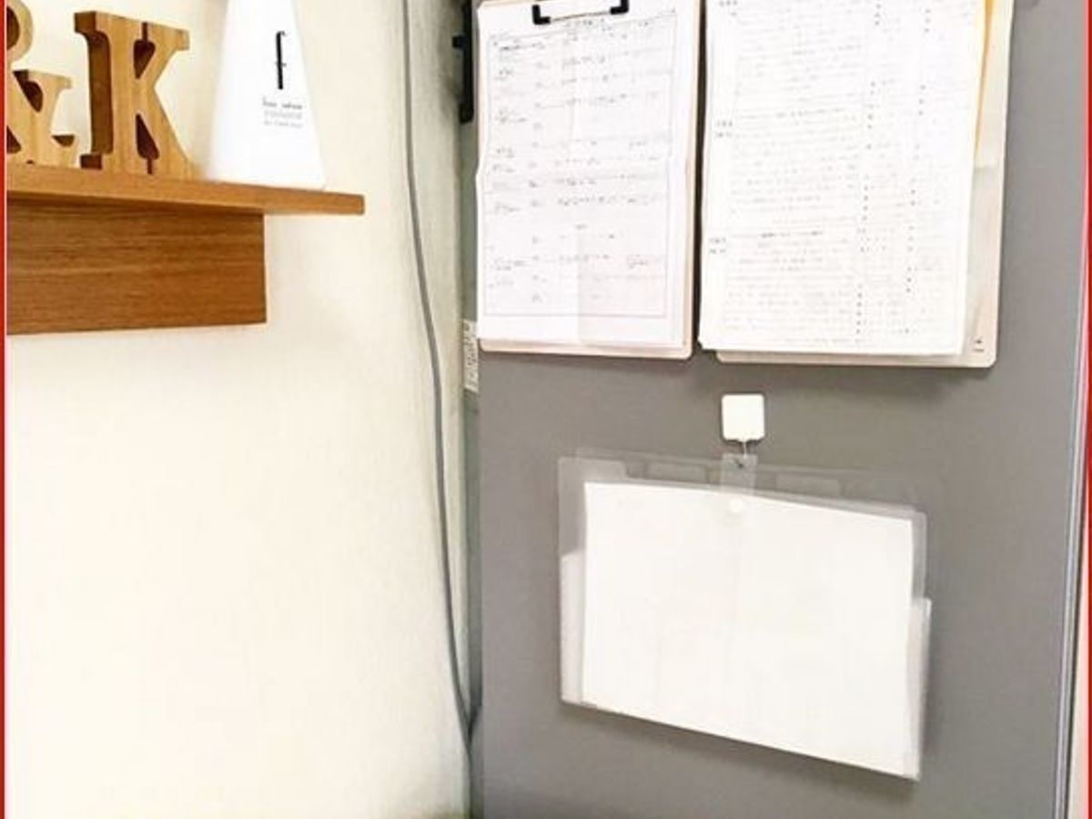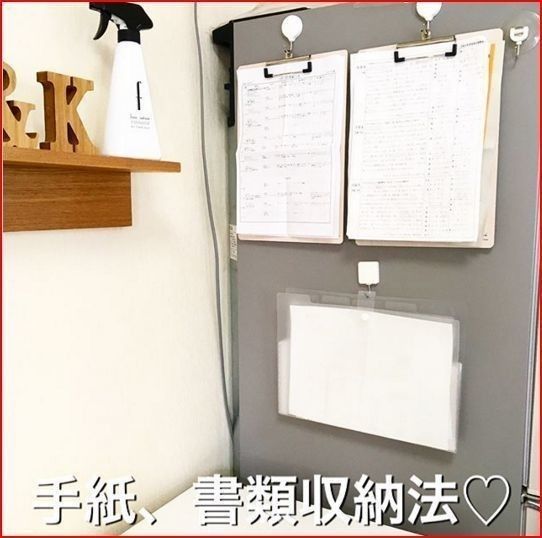 oheyasukkiri さんは100均のバインダーに挟んだプリントを冷蔵庫にかける方法を採用。こうすることですぐに目につき、来客などのときにはすぐに裏返せます!
