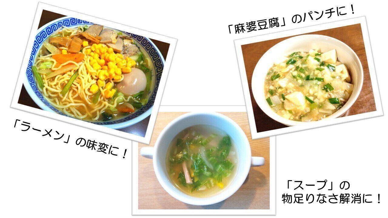 「ラーメン」や「スープ」などの汁気が多い料理であれば、数滴垂らしても辛くなりにくく、風味を加えて食欲UPに役立ちますよ。