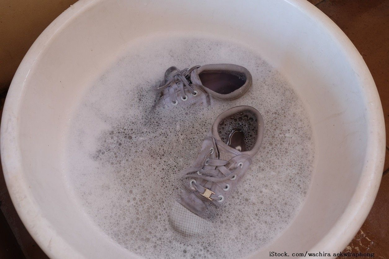 みい太さんの上履き洗いのポイントは、まず一晩、洗剤と漂白剤を入れた水で漬け置きすること。こうすることで臭いがとれ、頑固な汚れも落ちやすくなるのだとか。その後、お風呂掃除と上履き洗いをセットでお子さまにお任せします。肌が敏感なお子さまに合わせ、洗剤ではなくボディソープで洗うアイデアも◎。