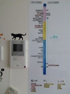日々の家事、週1回・月1回ペースでやりたい家事でマグネットを色分けし、壁面ホワイトボードに家事分担表を作成します。担当できる家事マグネットを夫自身に動かしてもらうことで、家事の負荷を分散することができます。
