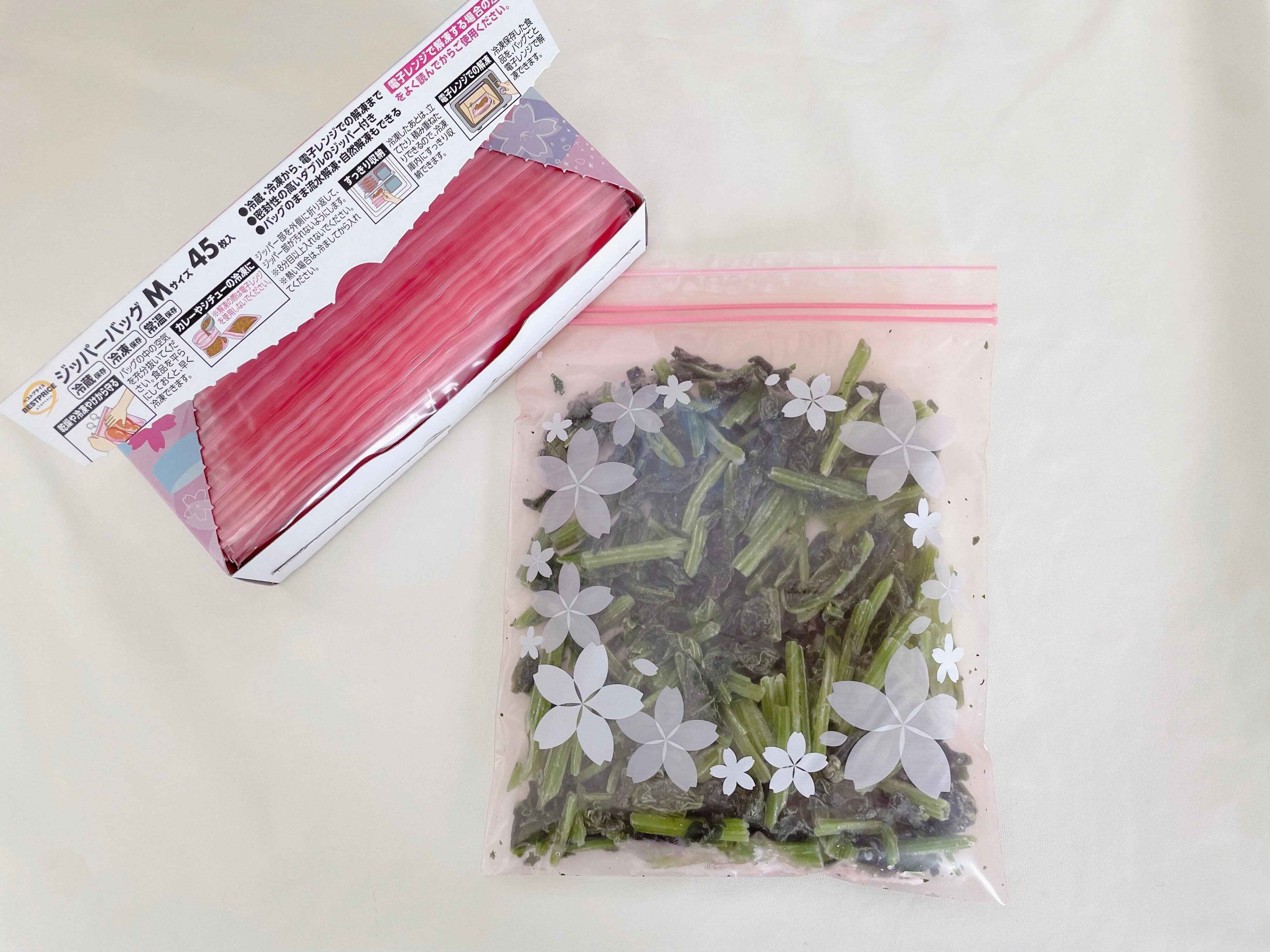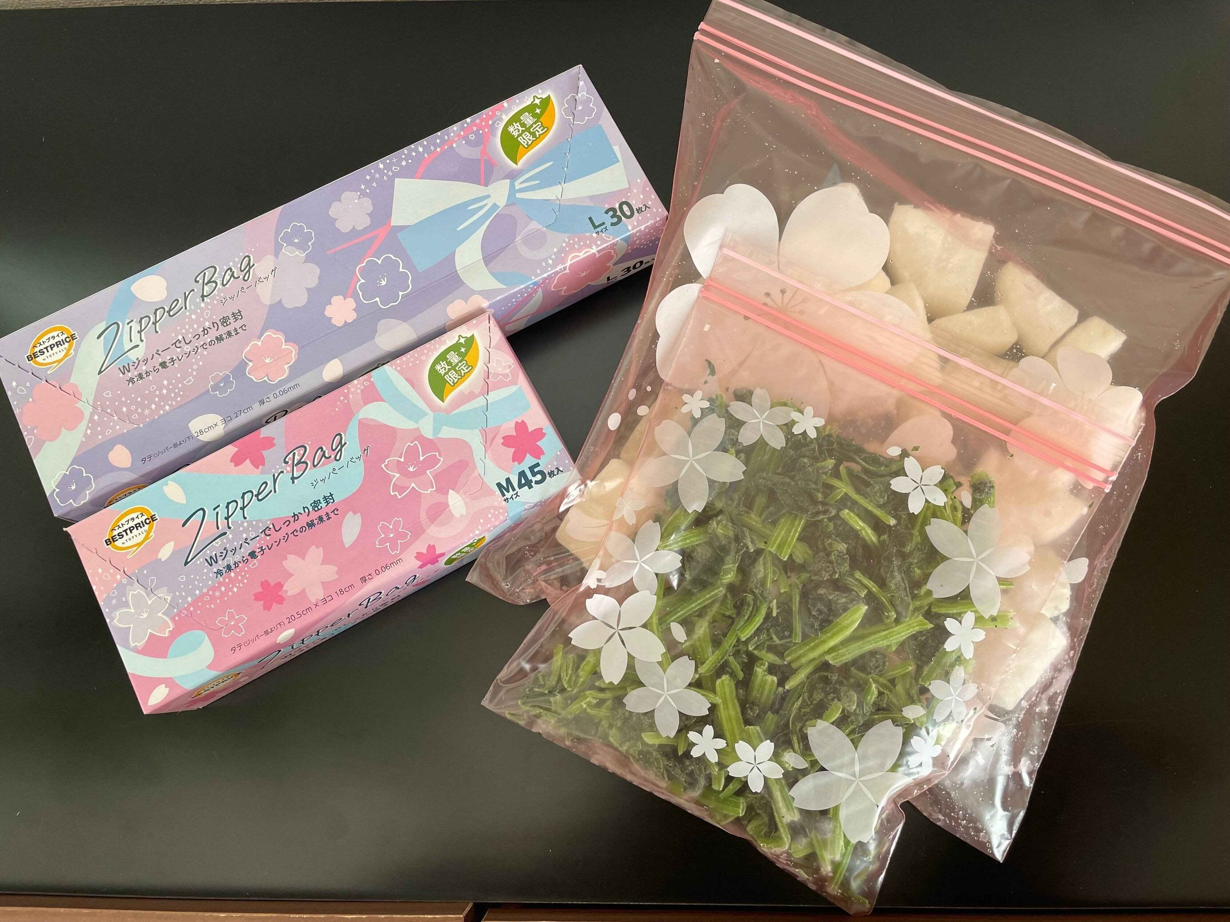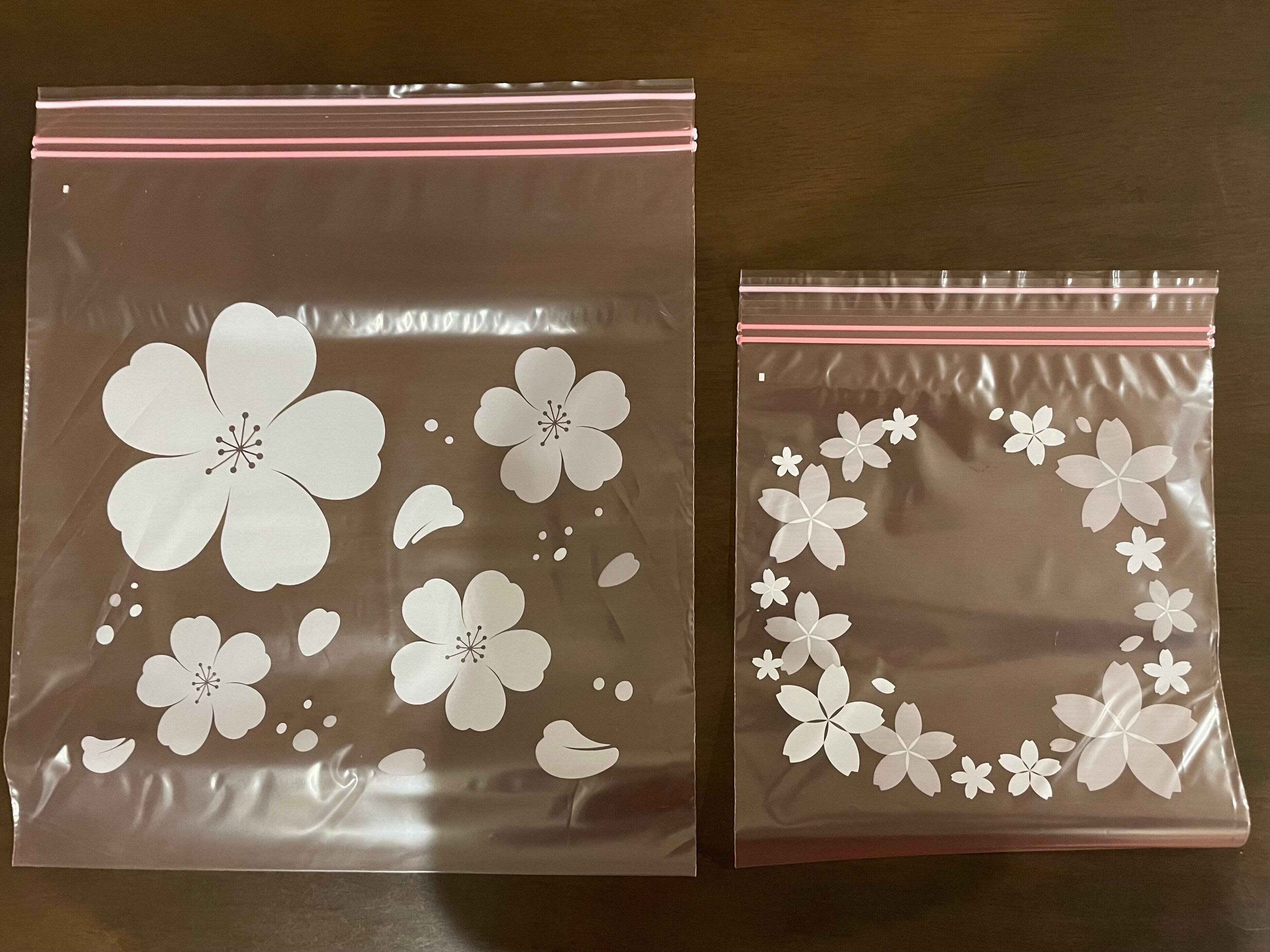 先日買い物に行った際に、さくら柄の華やかなパッケージのジッパーバッグが目に飛び込んできました。