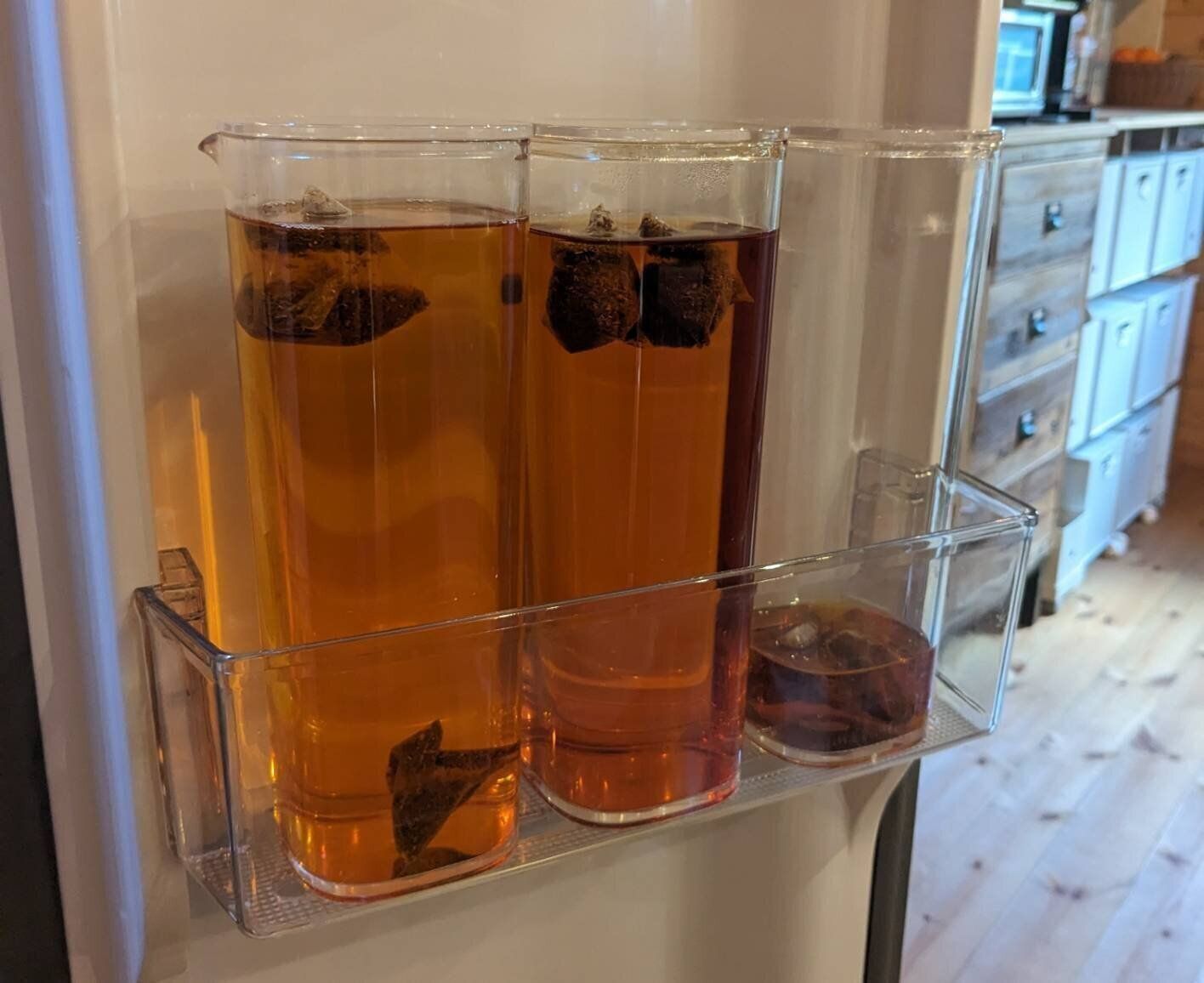 ただ、開閉なしで注げるからこそ、お茶の入れすぎには注意!際までパンパンに入れた状態で冷蔵庫のドアポケットに収納し、勢いよくドアを閉めると注ぎ口から若干漏れてしまいます。