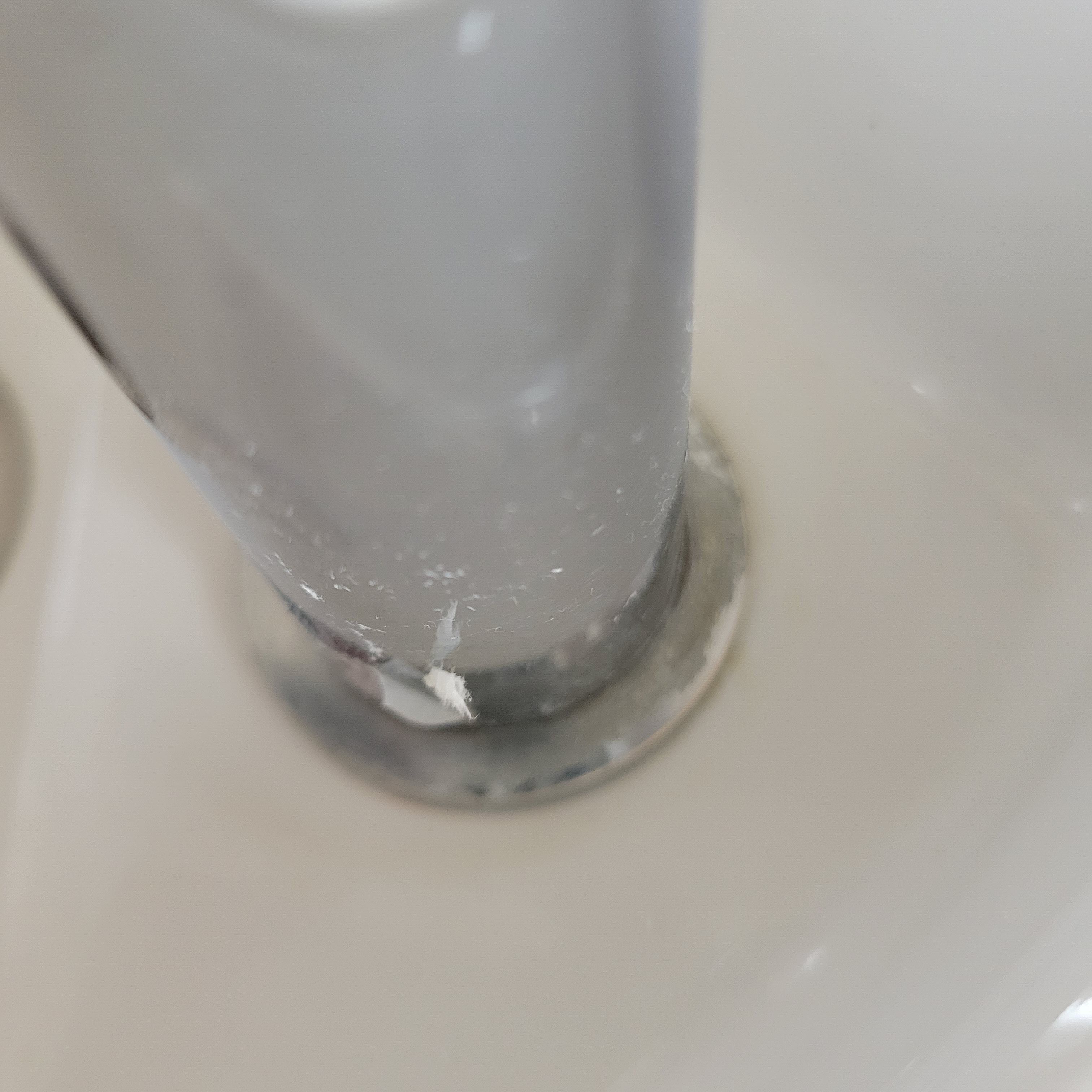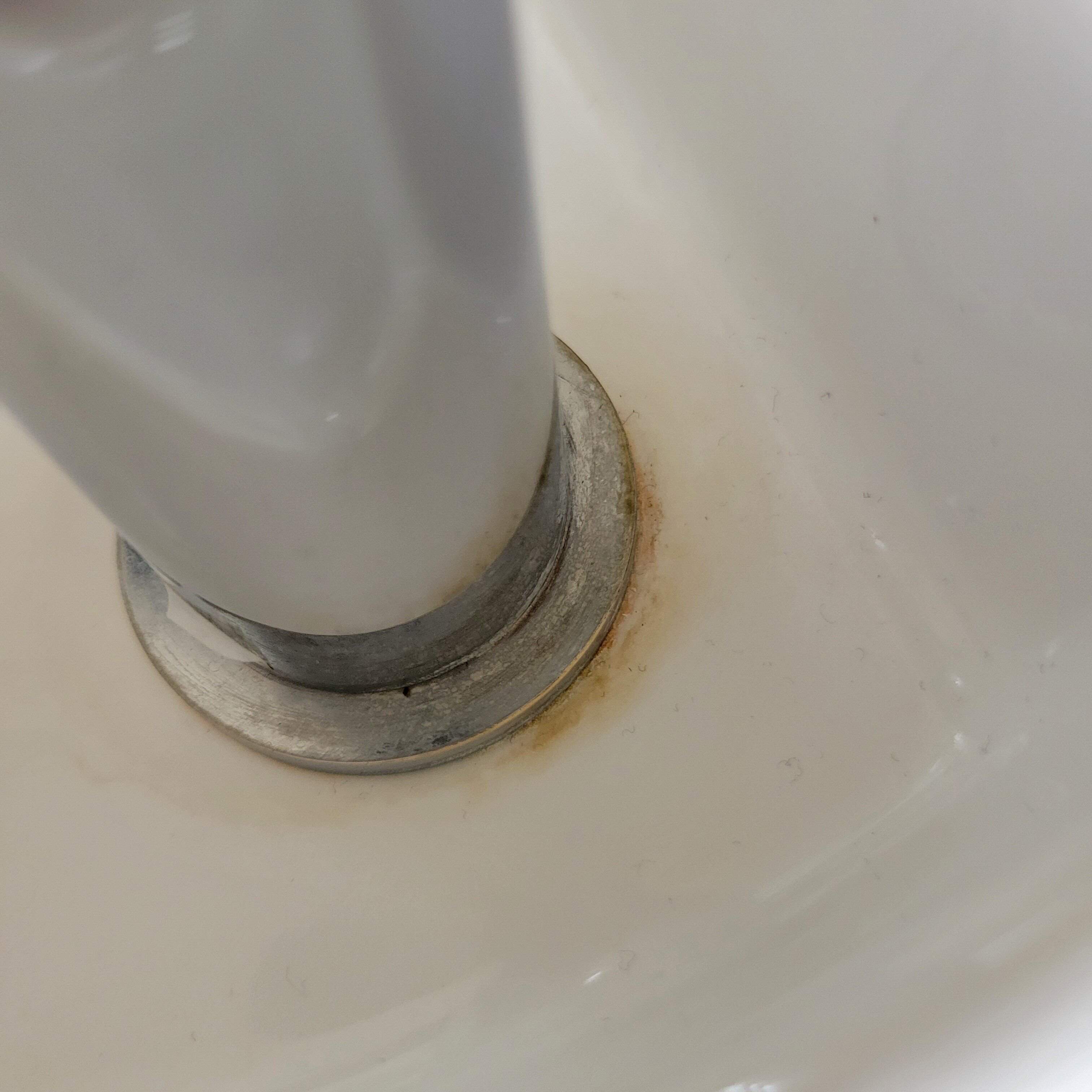 手洗い器の水栓の根元に水垢が付きやすく、クレンザーで落としてみたり、ひどい時にはサンドペーパーを使ってまでキレイにしたことがありますが、どの方法も陶器を傷つけるため納得いかずでした。