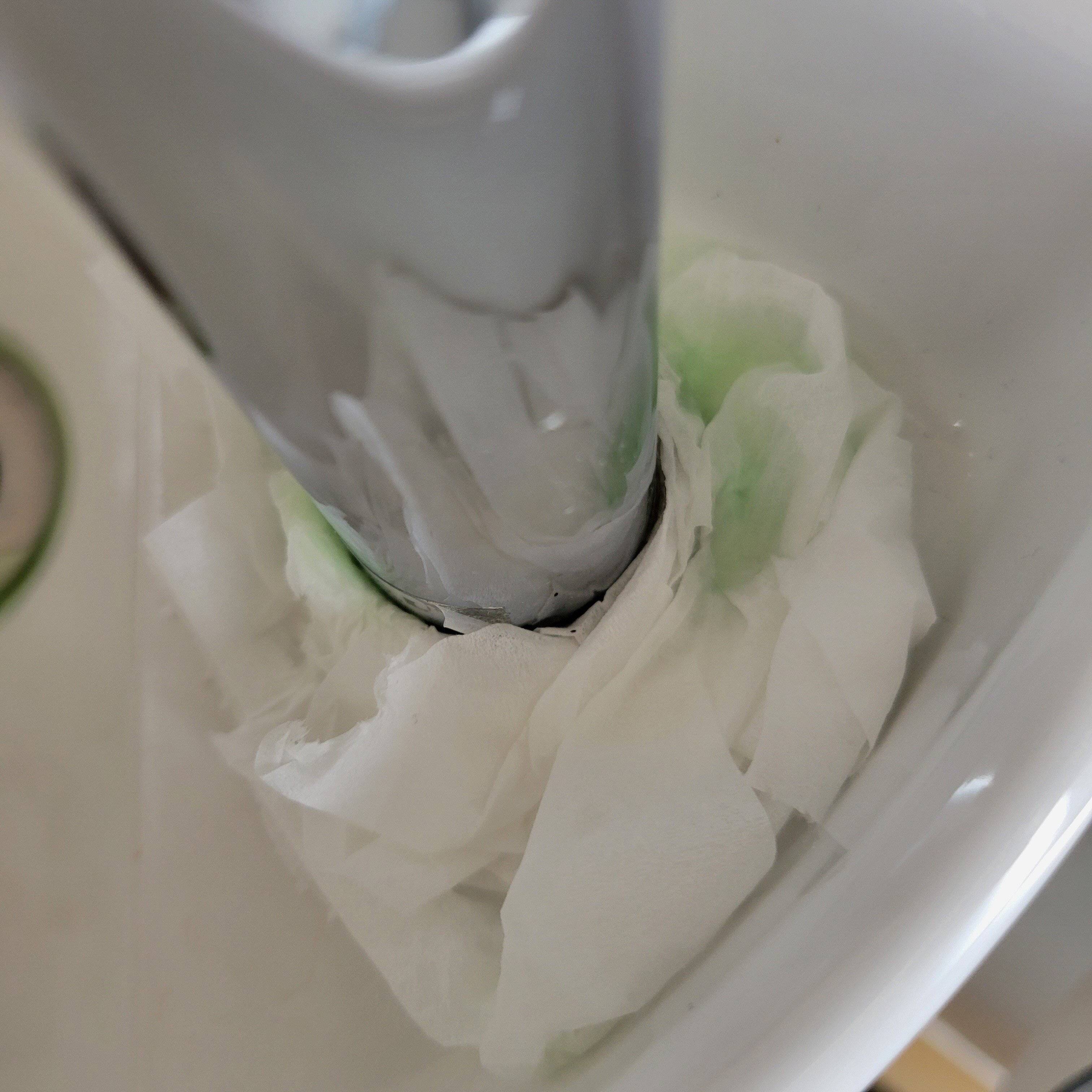 数滴垂らしてみると、自然と水栓の根元の周りに液が流れました。