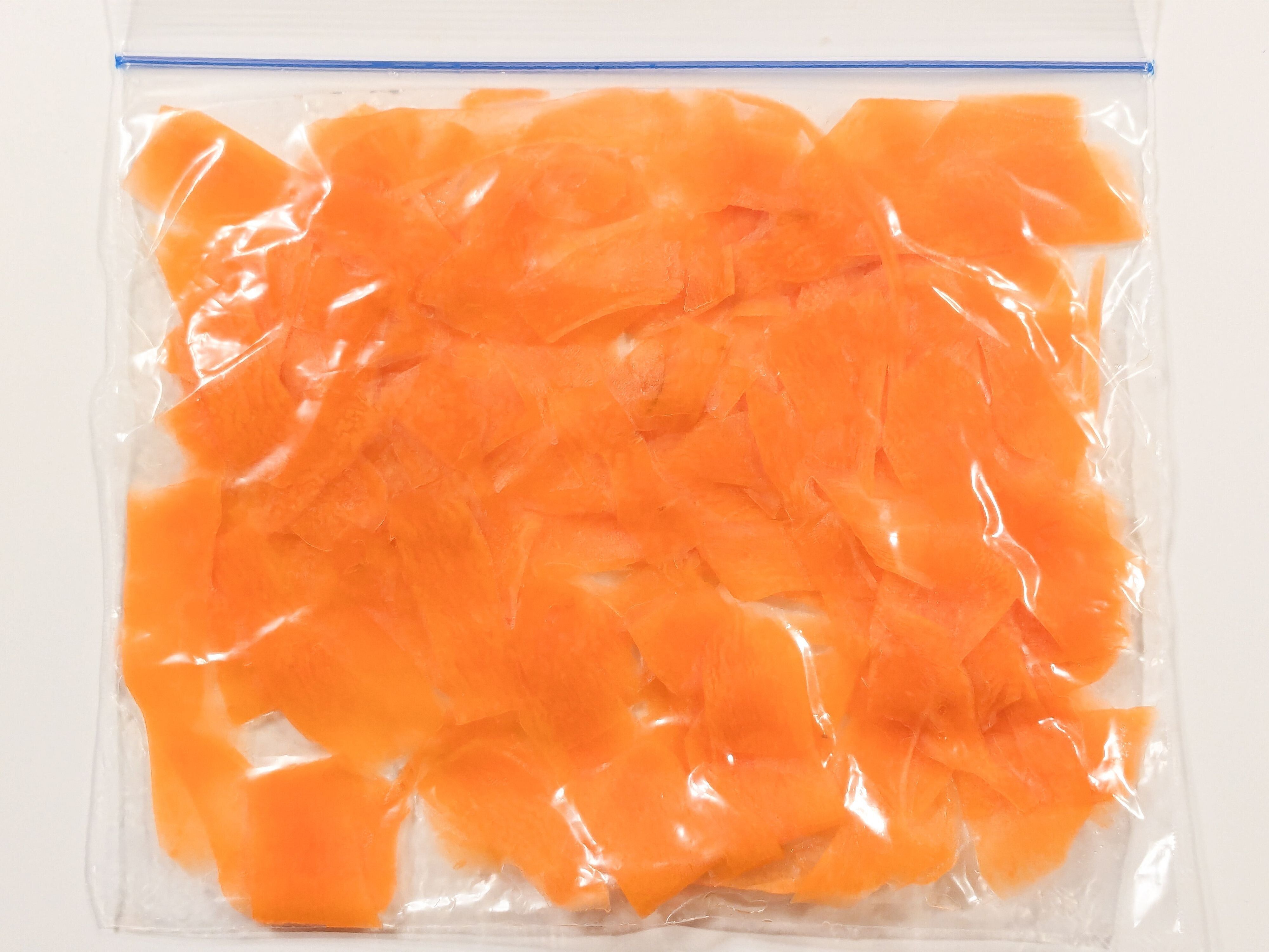 1.冷凍にんじんを袋ごと折りこまかく砕く。