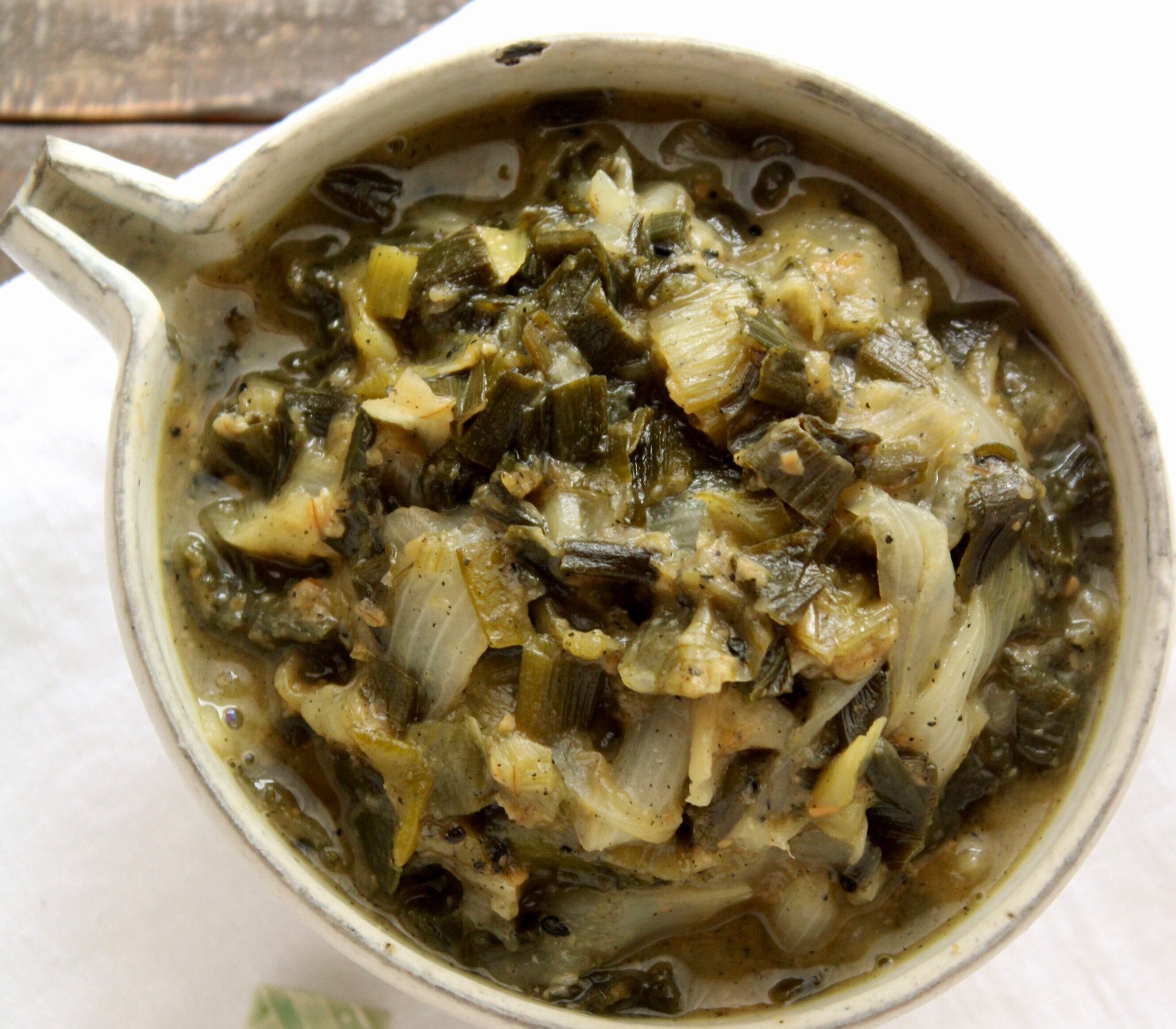 旬の時期には、青々しい葉つきの玉ねぎも出まわります。葉つき新玉ねぎに出会ったら、ぜひ作っていただきたい一品。