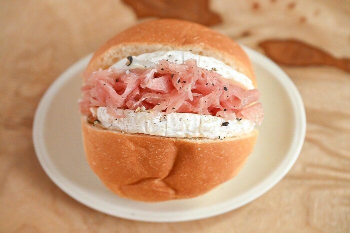 最初は白トリュフバターの味をしっかり堪能できる、クラッカーのせがおすすめです。クラッカーの素朴な味わいが白トリュフバターのテクスチャーと香り、味わいを引き立ててくれますよ。