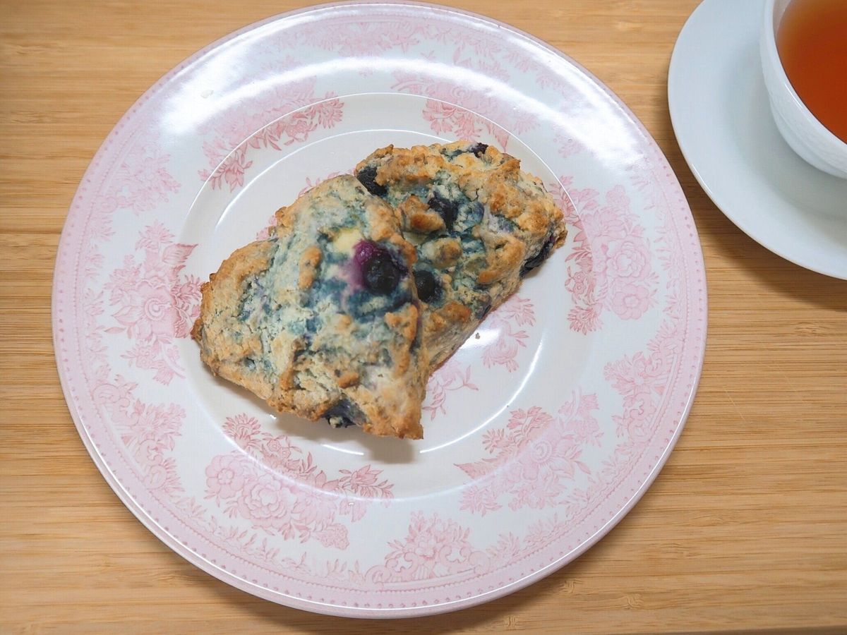 外はサクサク、中はふんわり。焼きたての香ばしい生地に、甘酸っぱいブルーベリーとクリームチーズの組み合わせが相性抜群の一品です!ぜひ、紅茶といっしょにおうちでカフェ気分を味わってみてくださいね。