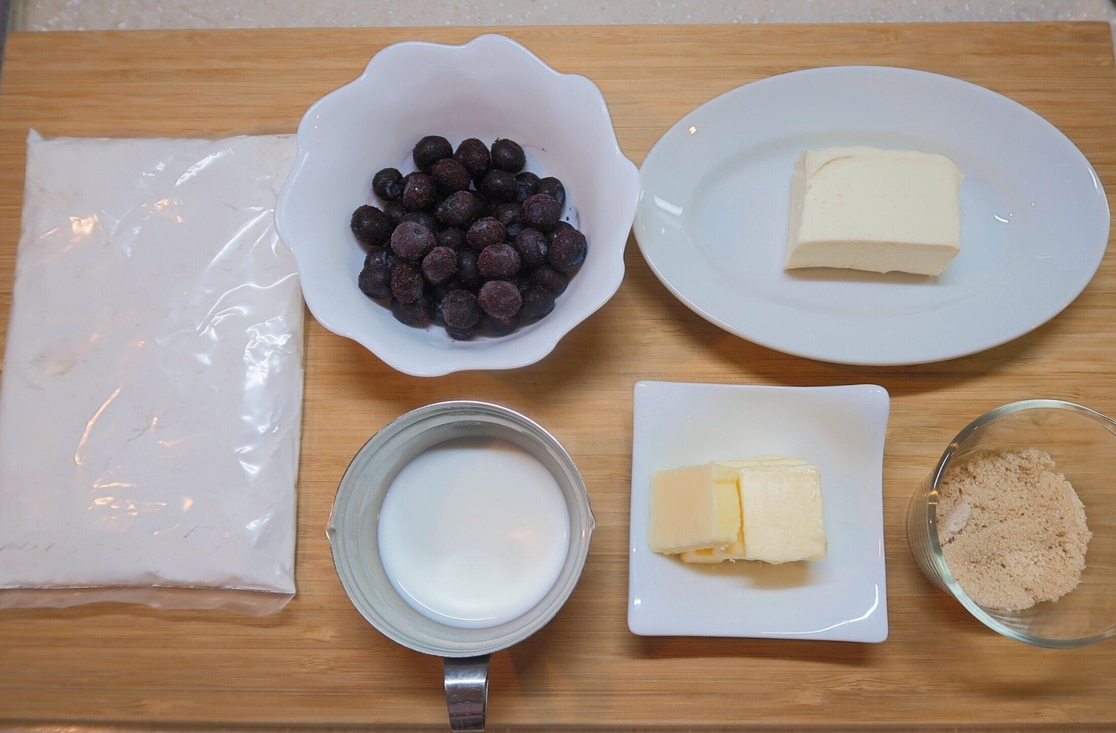 ホットケーキミックスを使った「ブルーベリーとクリームチーズのスコーン」。